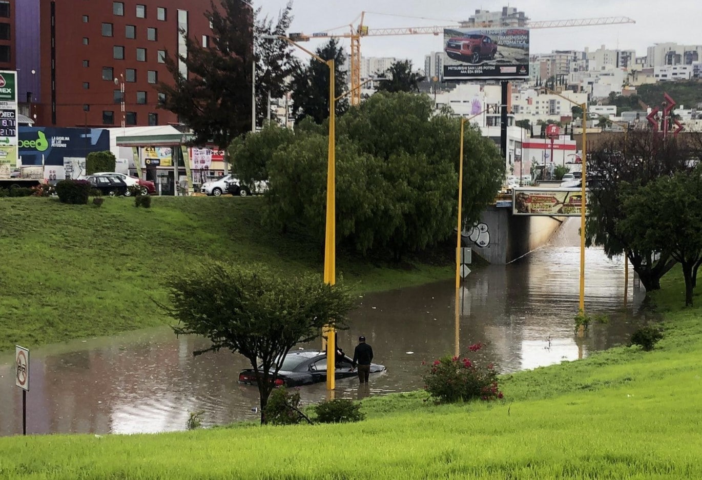 Este hecho fue captado por personas que pasaban por el lugar y divisaron a un hombre y una mujer arriba del techo del vehículo con el agua cubriendo casi por completo el automóvil.