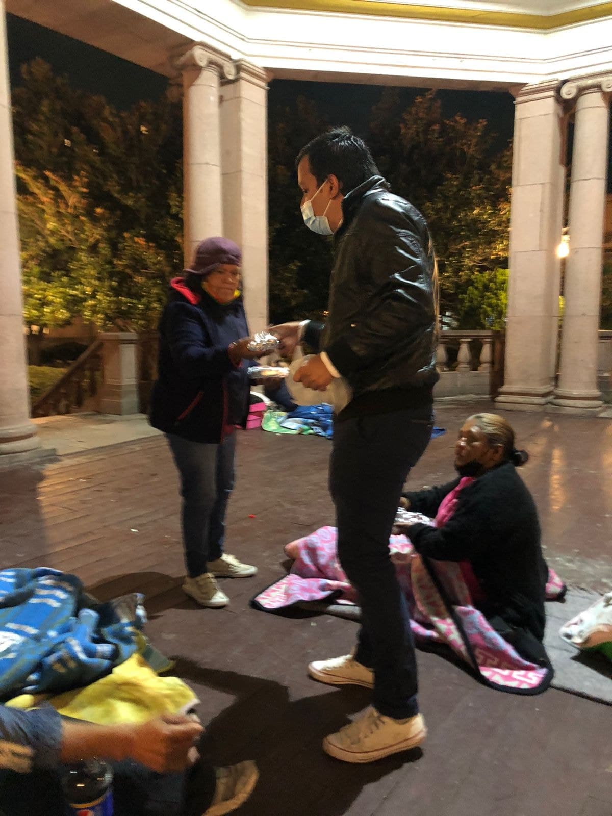 Luis Ángel Moncada y Susana entregaron hamburguesas, atole caliente de arroz con leche y un pan para las personas que así lo aceptaran. Recordando a los demás ciudadanos que es importante participar en labores y gestos amables para tener un San Luis más humano.