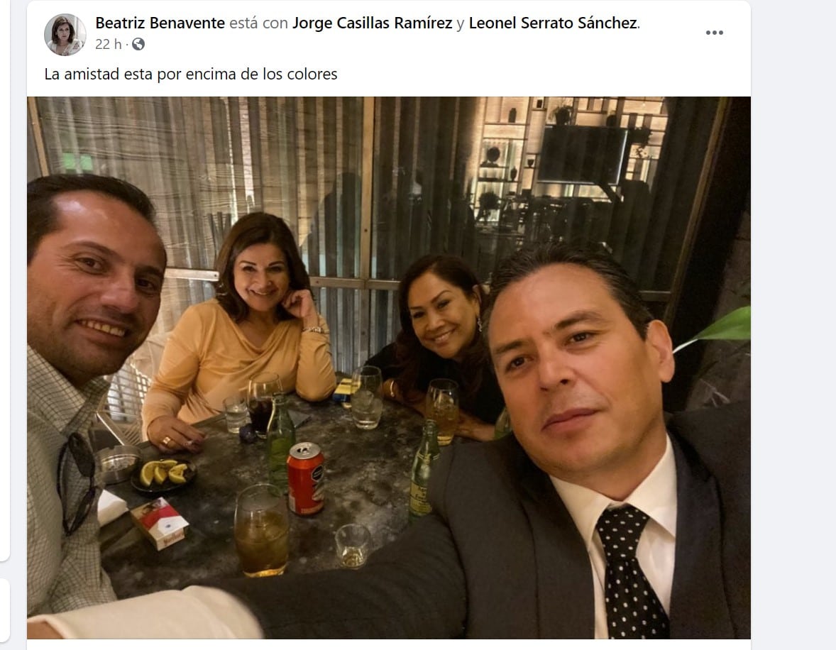 Beatriz Benavente publicó la fotografía acompañada de un texto “La amistad por encima de los colores” lo que hace recordar al dicho de la política mexicana “Los colores los divide y el presupuesto los mantiene unidos”.