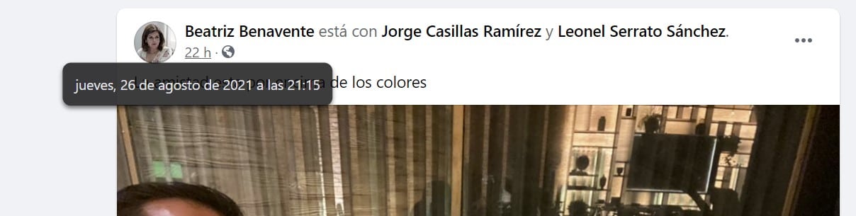 La fotografía fue publicada el jueves 26 de agosto a las 21:15 horas, sin embargo en la imagen se puede apreciar que la reunión transcurre durante alguna parte del día, antes de las 19:30 horas, pues todavía se aprecia luz.