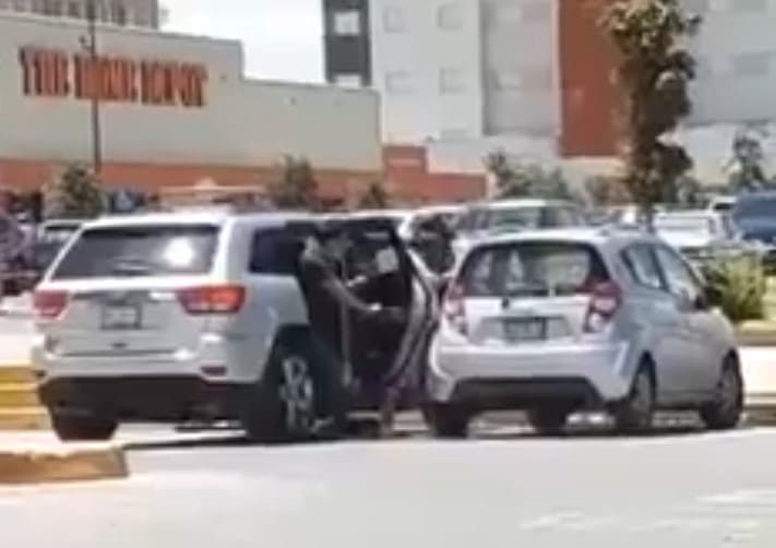 SLP.- En vídeo fue captado el momento en que dos hombres a bordo de una camioneta sustraían objeto de un vehículo compacto, dentro de las inmediaciones del estacionamiento público de un conjunto de comercios ubicados en la Carretera 57.