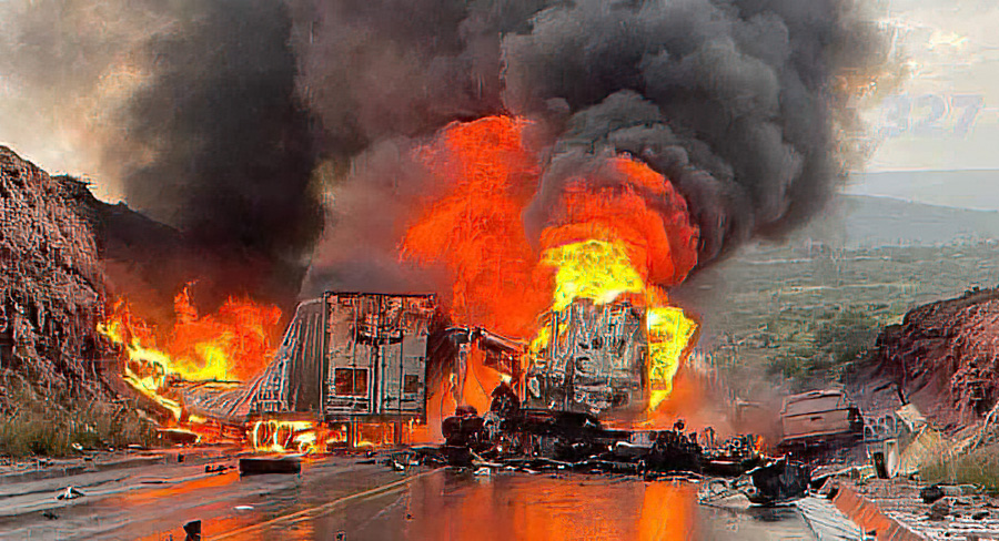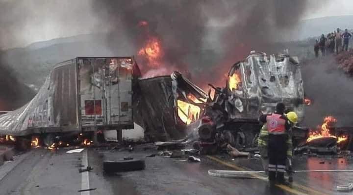 De acuerdo con información preliminar fueron tres triales los que chocaron junto con otros dos vehículos, lo que provocó una fuerte explosión que terminó con la vida de al menos dos personas al instante. Estos es solo información preliminar.