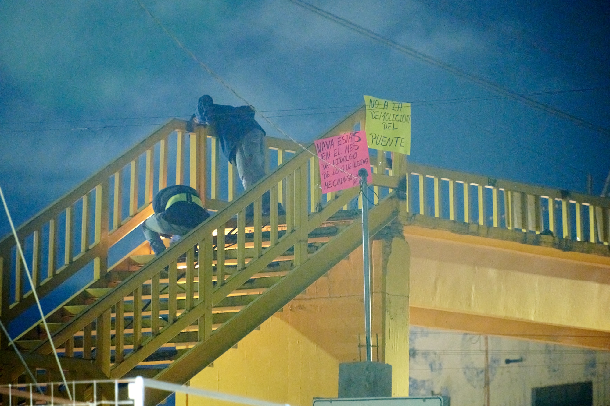 Durante el desmantelamiento del puente se cerró la circulación desde la calle de Miguel Hidalgo hasta el Eje Vial. Se desplegaron cuerpos de antimotines por el perímetro pues existía el rumor de que se podría detonar la violencia debido a grupos de comerciantes que se oponían a estas medidas.