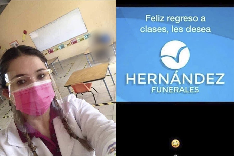 Con capturas de pantalla, los afectados señalaron que la maestra subió a su cuenta de Facebook una historia donde aparece una fotografía de ella con el menor en su pupitre, acompañada después de un meme de la imagen de una funeraria con la frase de “Feliz regreso a clases les desea Funerales Hernández” en clara alusión para el menor.