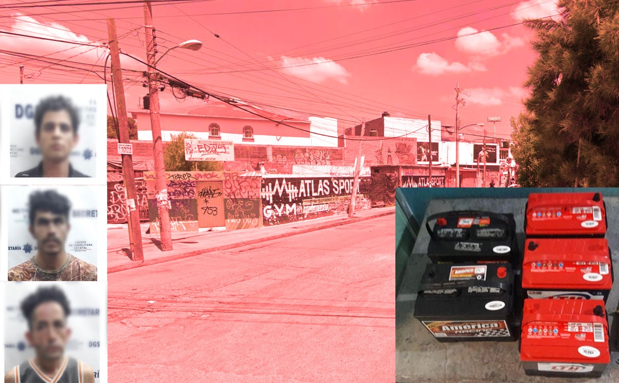 Los supuestos ladrones, fueron detenidos en la Avenida Sol y Morales Saucito, en la colonia Rural Atlas al norte de la capital potosina. Los presuntos de nombre Salvador de 31 años, Edward de 24 años y Roberto de 39 años, además de los cumuladores traían consigo dos armas punzocortantes y 4 dosis de cristal.