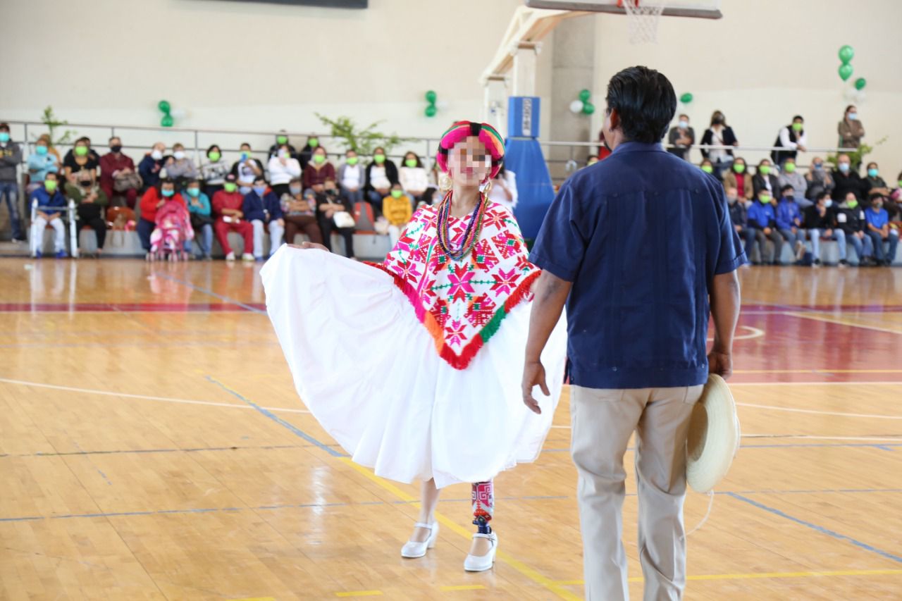 Tras la entrega dela prótesis, Quetzaly en compañía de sus padre, dieron una muestra de su talento para bailar danza folclórica y al ritmo de un son huasteco  hizo uso de sus prótesis recibida, la cual resalta por  tener bordado un diseño Teenek , el cual fue bordado a mano por su madre.