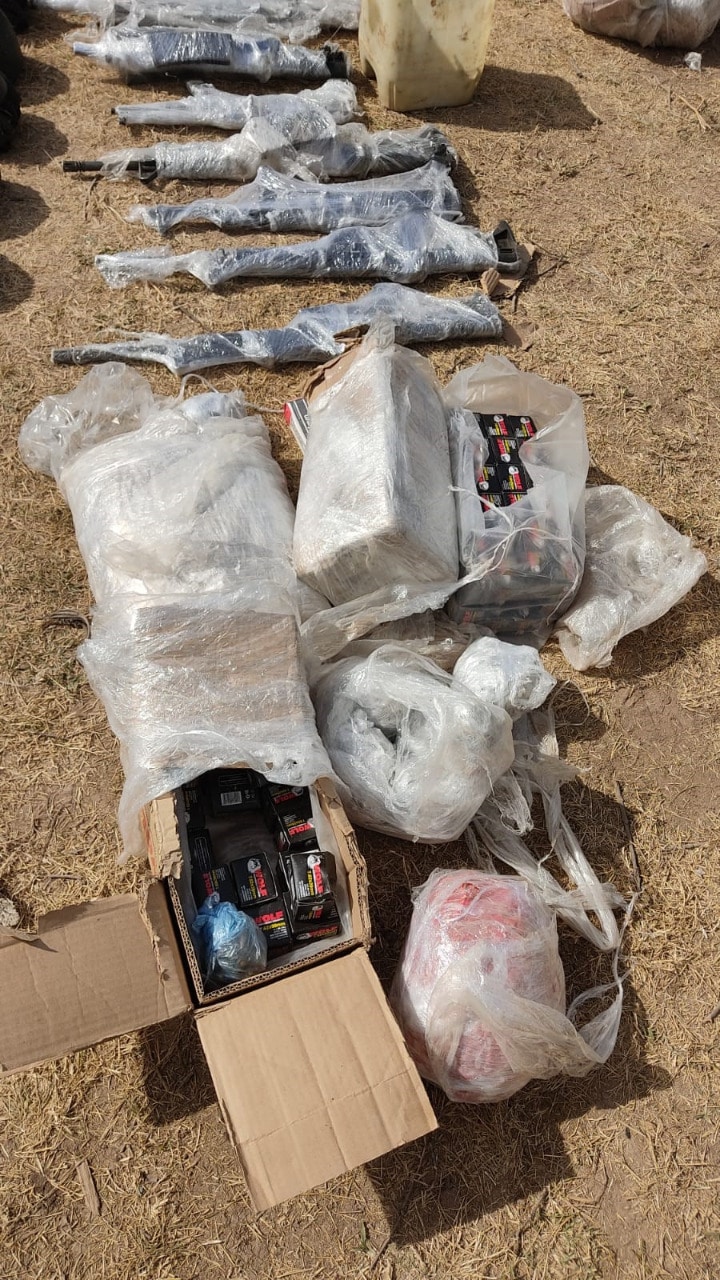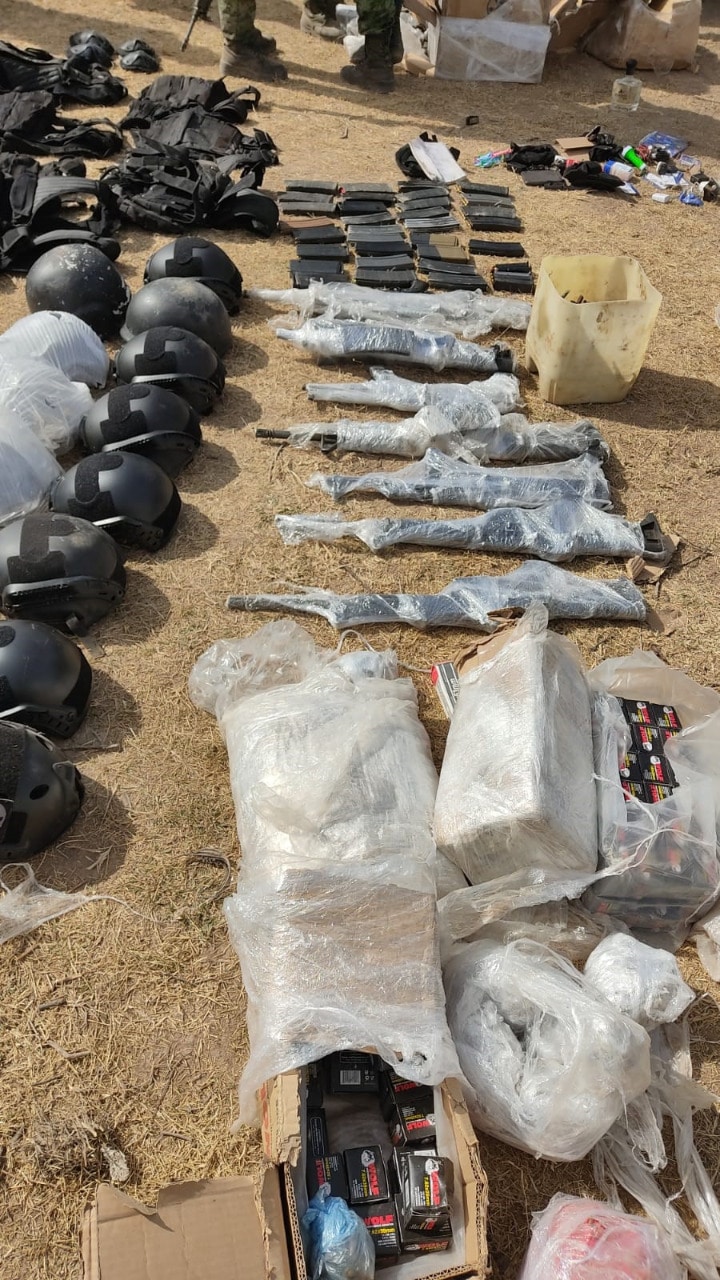 Tras un enfrentamiento que duró varias horas, se logró abatir a tres agresores y detener a 22 persona, así como asegurar los siguientes artículos:
