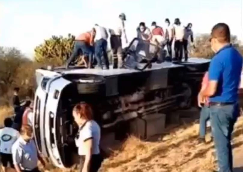 De acuerdo con la primera información, el chofer iba manejando a exceso de velocidad lo que provocó que perdiera el control de la unidad y terminará a un lado del camino. Algunos de los pasajeros pudieron salir por su cuenta propia, pero otros tuvieron que ser auxiliados.