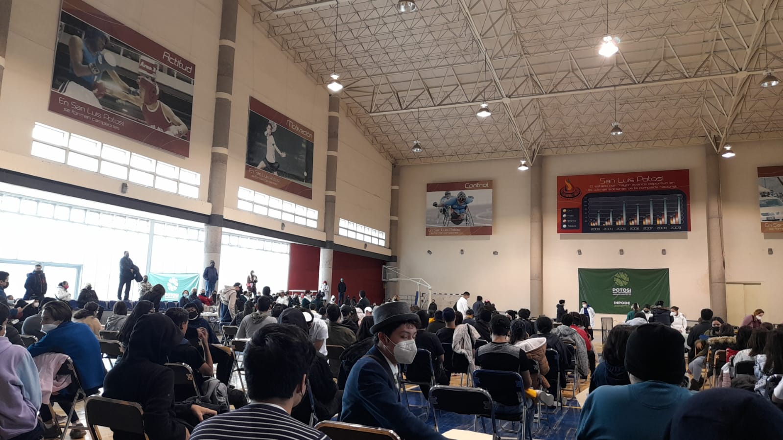 Desde temprano se reportaron largas filas en los centro de vacunación: Universidad Politécnica, Centro de Alto Rendimiento, Parque Tangamanga II, instalaciones de la FENAPO, y en la Escuela Primaria Pedro Montoya en Soledad.
