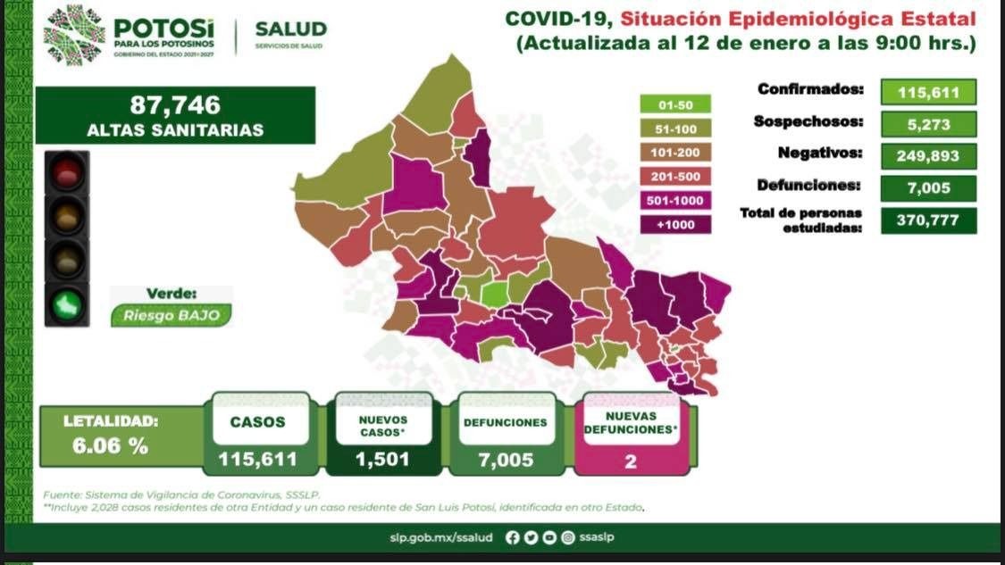 Nuevo récord: SLP registra 1,501 casos en las últimas 24 horas