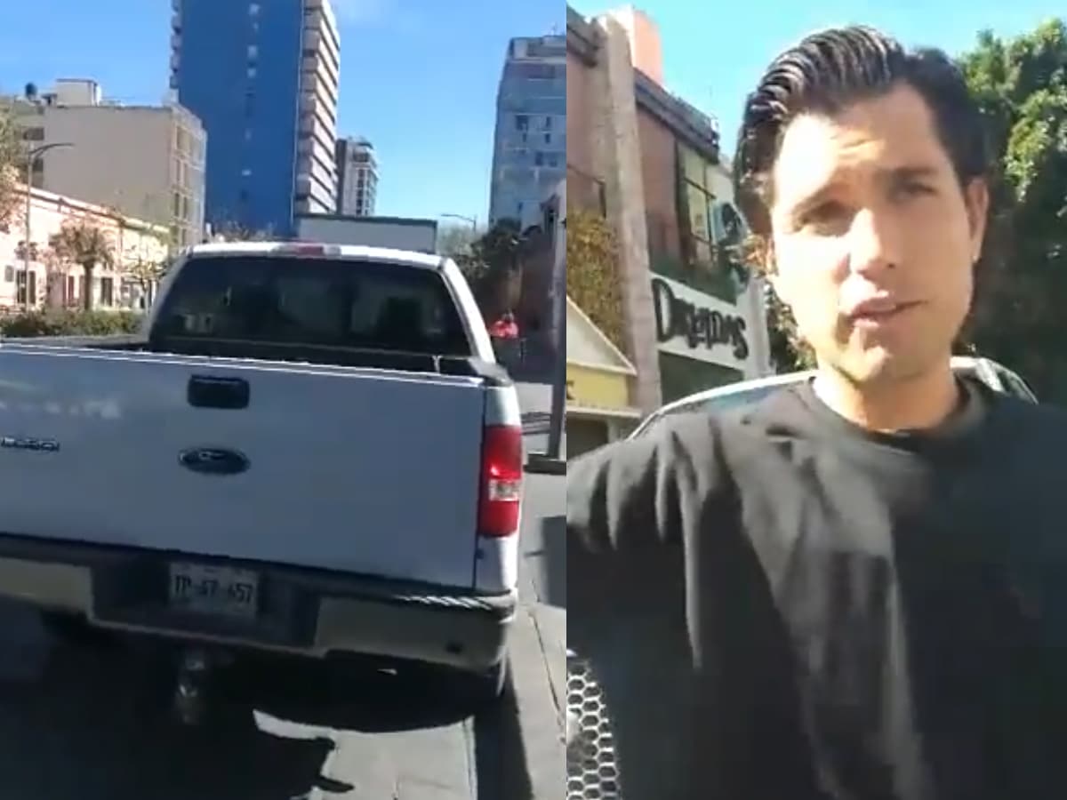 El ciudadano encaro al ex legislador a quien le cuestionó la razón por la que su vehículo que encontraba obstruyendo el área asignada para la seguridad de ciclistas, a lo que Gerardo Serrano respondió: