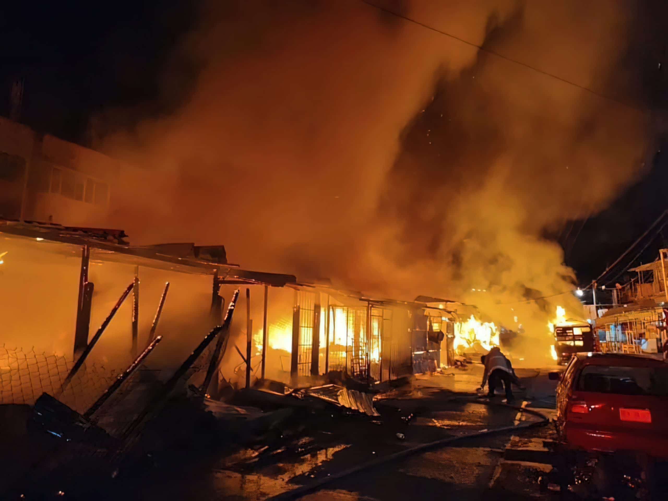 Guerrero.- Poco más de 80 locales pertenecientes al mercado “Tianguis Campesino”, se consumieron en las llamas tras una acción del crimen organizado ocurrido cerca de la zona centro de Acapulco, Guerrero.