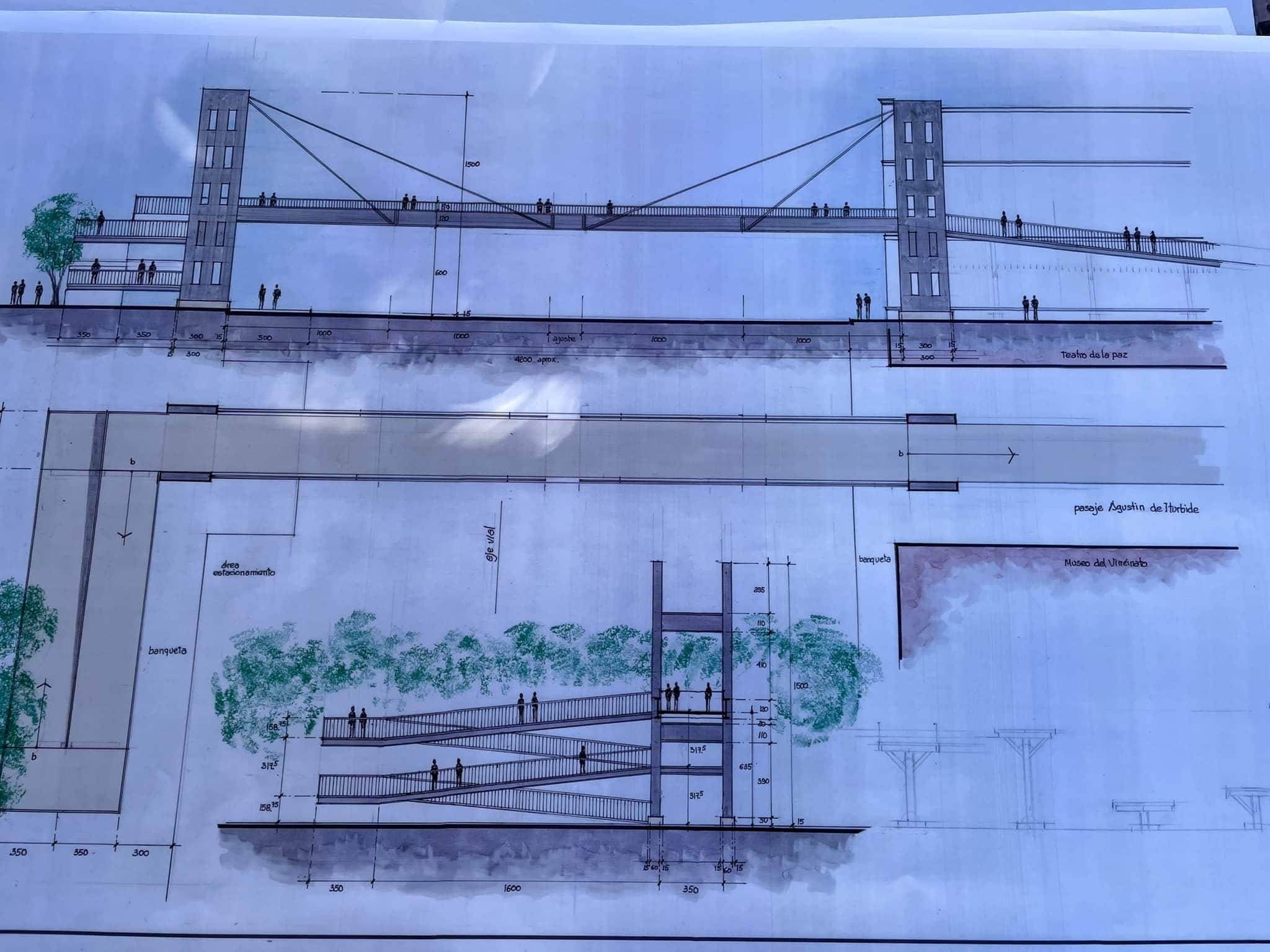 La nueva alameda contará con tres puentes atirantados que conectarán el Centro Histórico con este espacio.