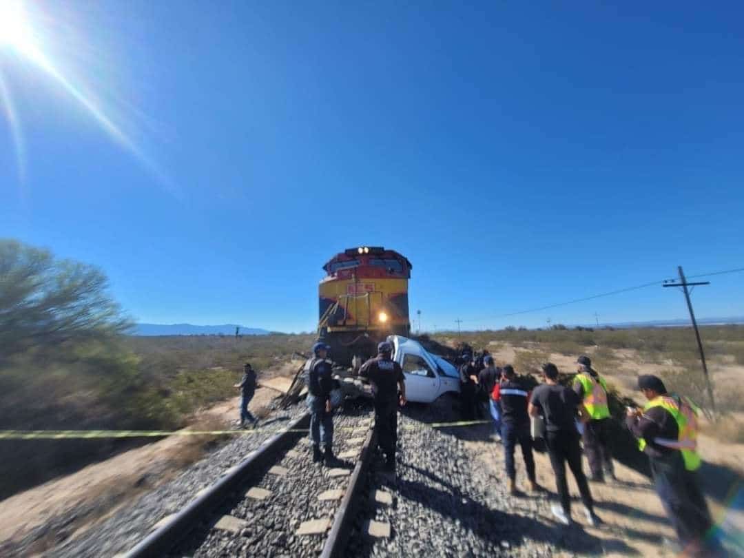 Los hechos se registraron en las vías férreas que conducen a Estación Catorce, cuando el conductor a bordo de una camioneta tipo pick up de color blanco se cruzó de forma imprudente y quedó atascado en medio de las vías.
