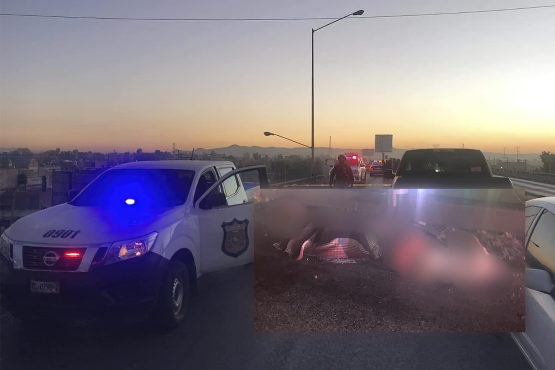 Los cuerpos se encontraban con signos de violencia y presentaban heridas de arma de fuego. Dos de los cuerpos se encontraban en la parte de arriba del puente y otro más en la parte baja.