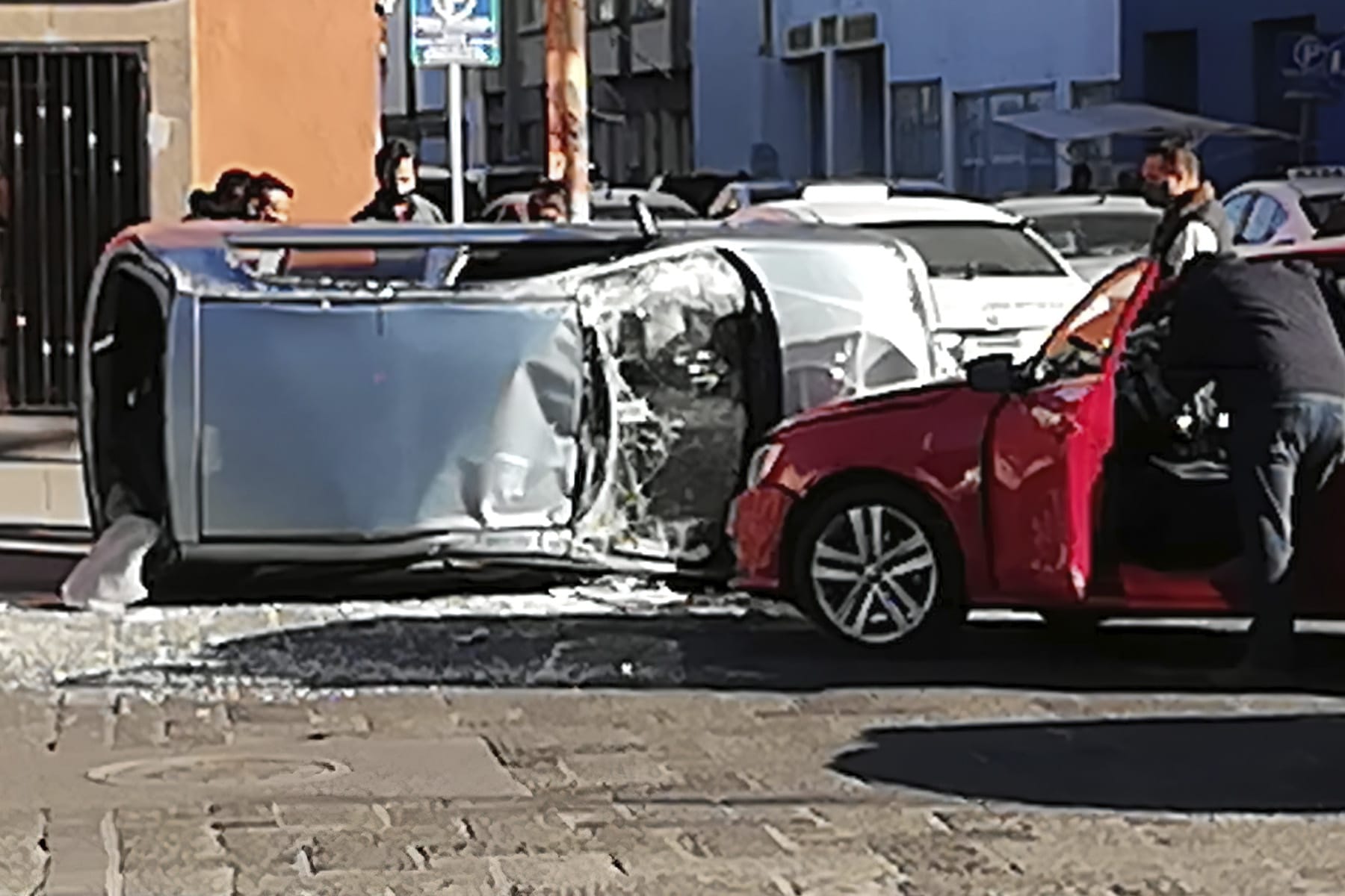 De acuerdo con información preliminar, un vehículo color gris se habría pasado el alto por lo que terminó siendo impactado por un vehículo rojo. A causa de la velocidad con la que el vehículo gris intentó cruzar el rojo, éste terminó volcando y quedando de un costado a mitad  de la calle.