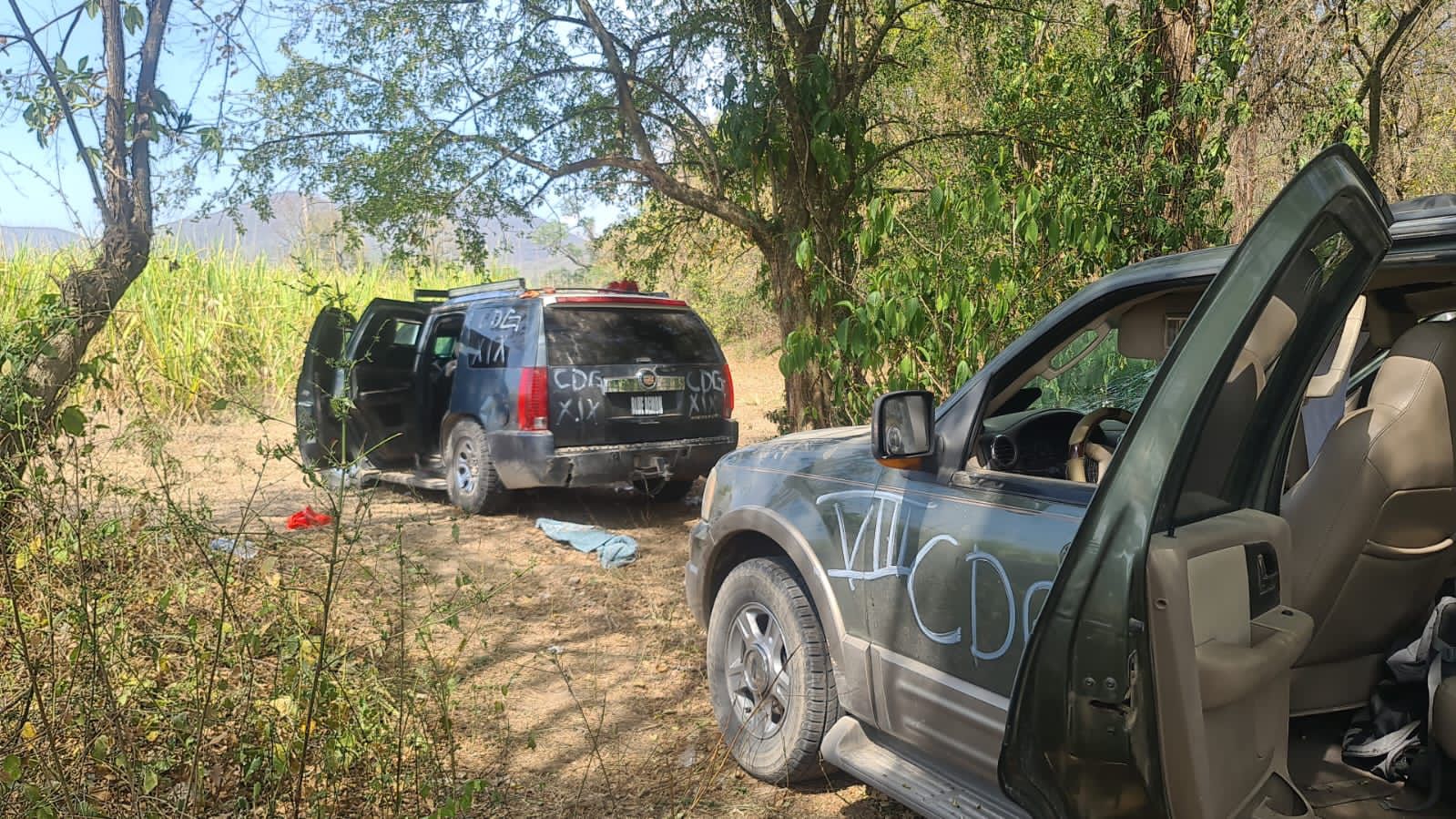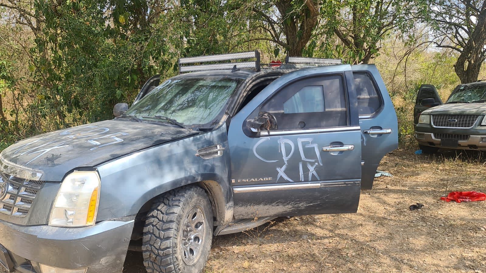 Además, se aseguraron 4 armas largas tipo AR15 y dos más de grueso calibre que portaban los occisos agresores tipo AK47, 16 cargadores con cartuchos útiles de diferentes calibres, 6 chalecos anti balas con la leyenda “CDG”, 3 equipos de radio comunicación y los siguientes vehículos: Camioneta Cadillac en color azul con blindaje artesanal, camioneta Chevrolet, Camioneta Ford Expedition Verde, automóvil Nissan Sentra rojo.