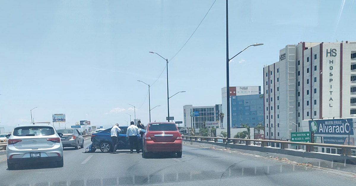 Esta tarde se registra un bloqueo vial en una de las cimas de la Carretera 57, a la altura del puente de la calle granate,  a causa de dos vehículos que se encuentran chocados y  además tres hombres armados intentan sacar amagar contra un conductor.