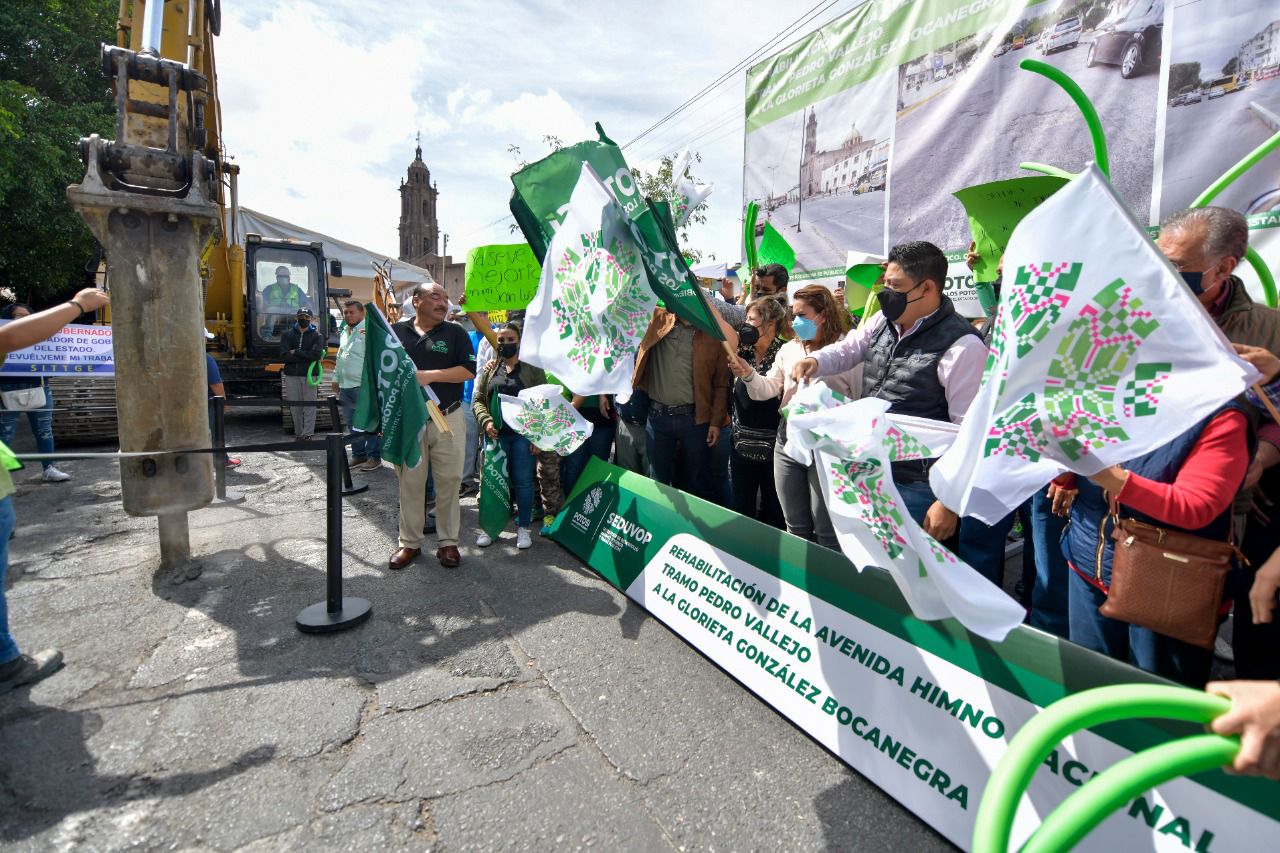 Acompañado de los vítores de un nutrido grupo de ciudadanos que acompañaron a Ricardo Gallardo Cardona en el magno evento agitó la bandera para dar inicio a los trabajos. Ahí el gobernador detalló que en una primera etapa el sector vial que estará cerrado comprende el tramo de la glorieta Bocanegra hasta la calle Pedro Vallejo y se incluye cinco kilómetros con concreto hidráulico a una ampliación de 12 metros; sustitución del sistema de iluminación con lámparas LED; señaletica y rayas delimitadoras con logotipos especiales en las guarniciones para personas con discapacidad.