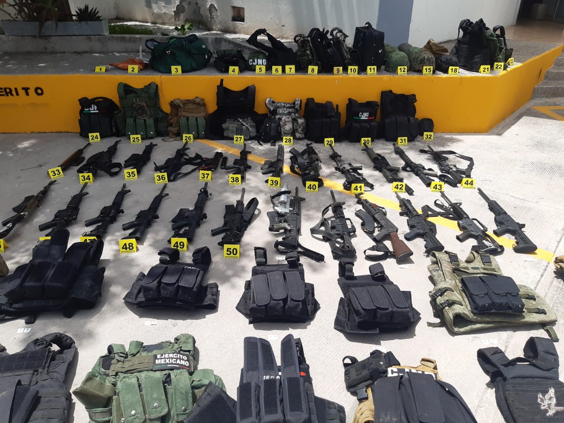 En el lugar se desplegó un operativo de seguridad en el que participaron varias fuerzas de seguridad, lográndose la detención de una persona y el aseguramiento de tres vehículos, armas de alto poder, equipo táctico con las siglas de un grupo criminal y cartuchos útiles.