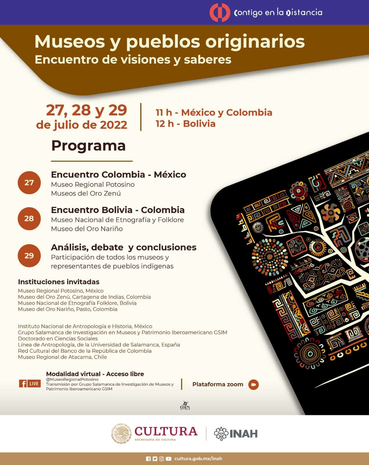 SLP. Con la presentación del conversatorio internacional “Museos y pueblos originarios. Encuentro de visiones y saberes” el Museo Regional Potosino del Instituto Nacional de Antropología e Historia celebra su 70 aniversario. Importantes instituciones académicas y museísticas iberoamericanas auspician el magno evento que se presentarà en formato virtual los días 27, 28 y 29 de julio a las 11:00 hrs.