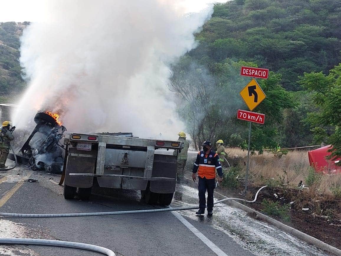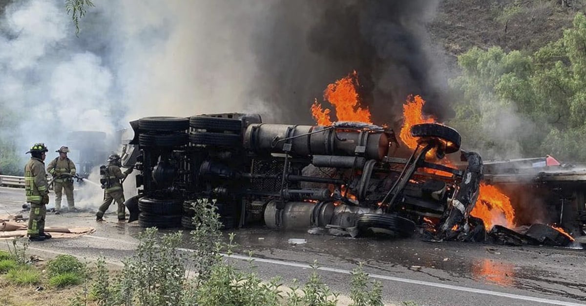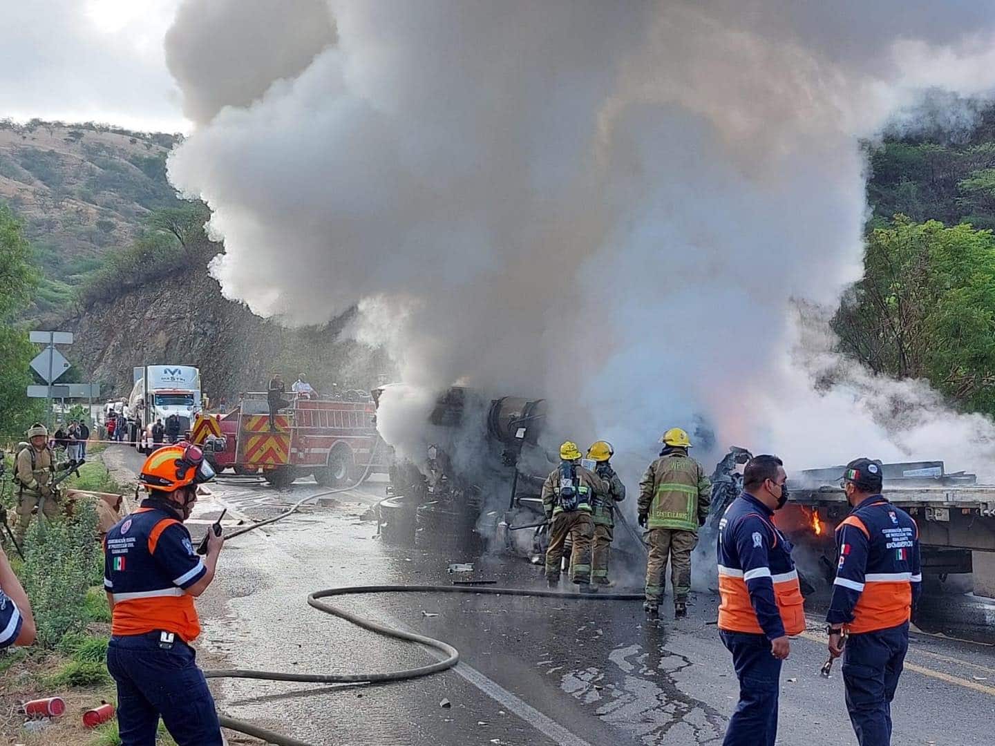 El accidente se registró a unos kilómetros del túnel cuando las dos pesadas unidades chocaron de frente lo que además ocasionó un fuerte incendió que consumiría por completo las unidades..