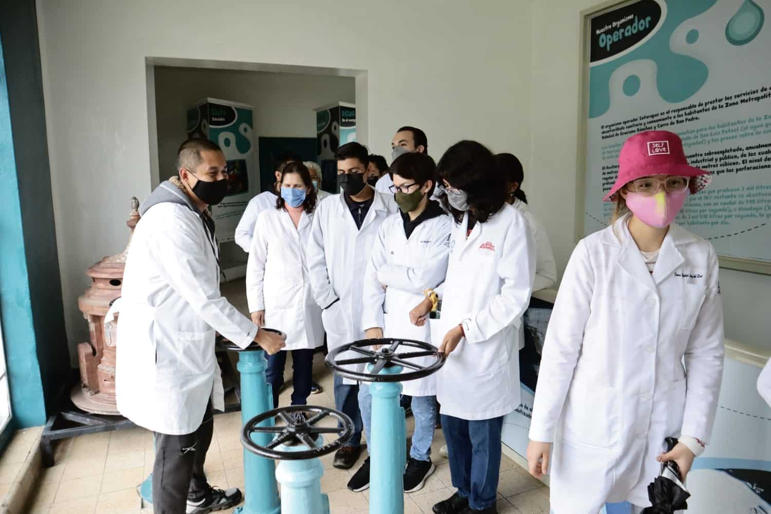 SLP.- Con la finalidad de conocer el proceso de potabilización del agua proveniente de la presa de San José, alumnos y catedráticos de la Facultad de Ciencias Químicasde la Universidad Autónoma de San Luis Potosí, visitaron la planta Los Filtros del Nuevo Interapas.