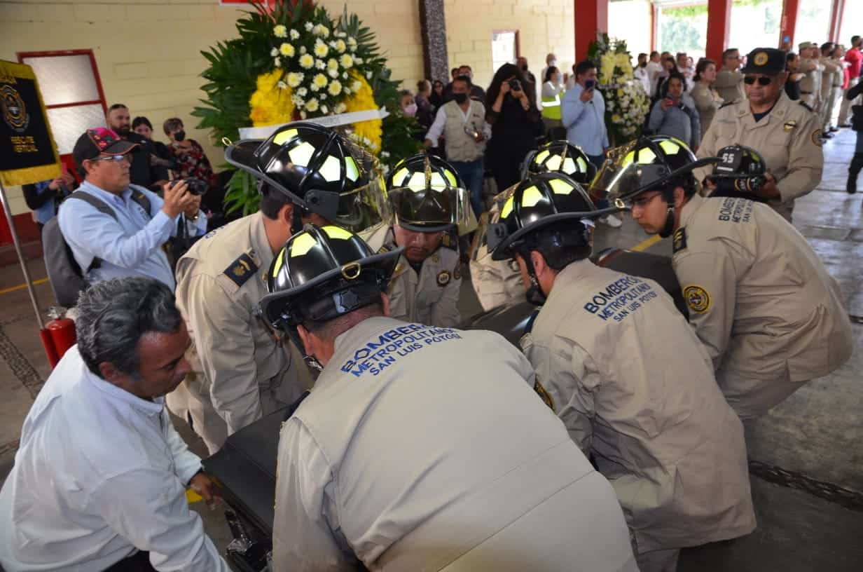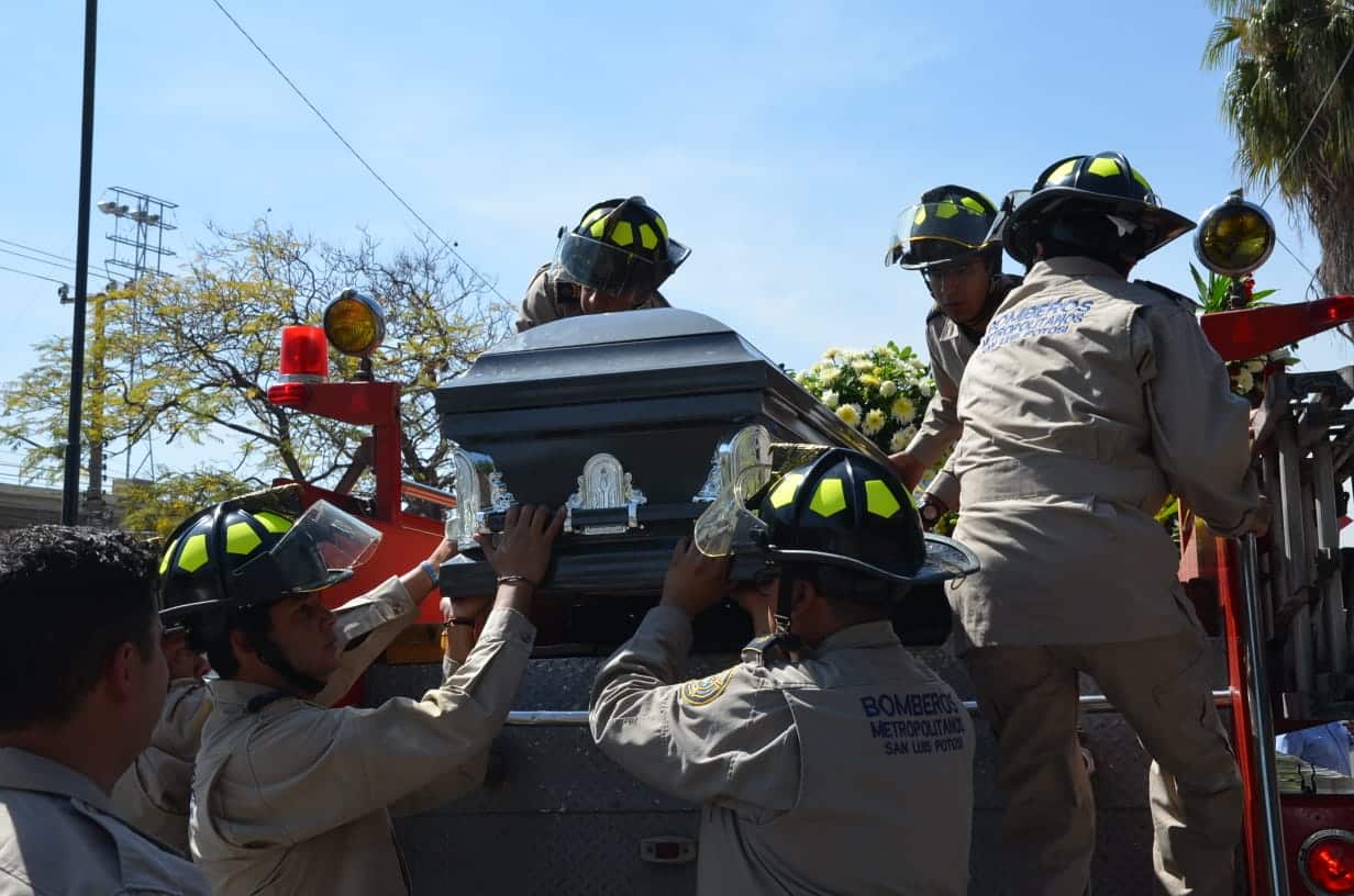 Su ataúd fue colocado arriba de la unidad M-10, la cual sirvió de carro fúnebre que junto con otras unidades y vehículos hicieron sonar su sirena por toda la ciudad para dar el último adiós y honrar los cerca de 12 años de servicio voluntario que presto a las y los potosinos a través del Honorable Cuerpo de Bomberos.