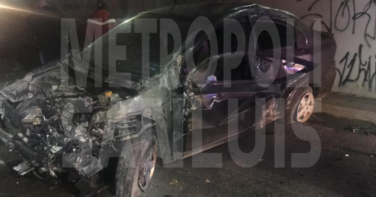 SLP.- Una persona perdió la vida y otra más resultó con graves lesiones luego de que un vehículo en el que viajaban se impactara contra un muro de contención en Periférico Sur a la altura de la colonia Arbolitos.