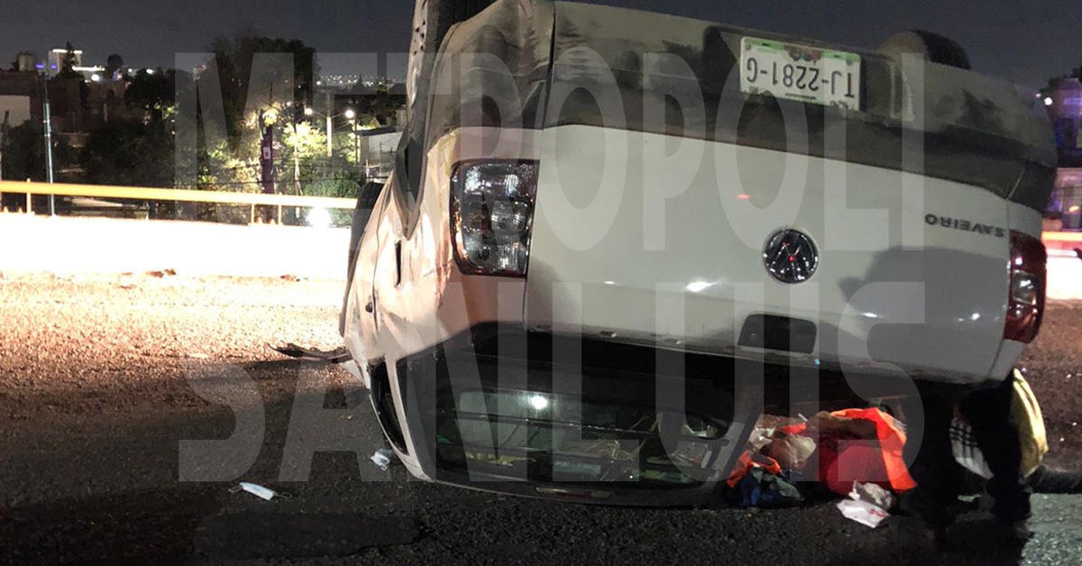 El vehículo, una camioneta Saveiro con placas de circulación TJ 2281 G del estado, aparentemente era conducida a exceso de velocidad cuando el conductor perdió el control de ésta y terminó con las llantas mirando hacia arriba.