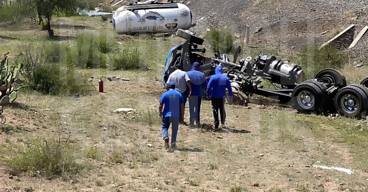 El incidente ocurrió después de las 13:00 horas, lo que llevó a Protección Civil y Bomberos Municipal a acudir al lugar para controlar la situación de la pipa de gas accidentada.