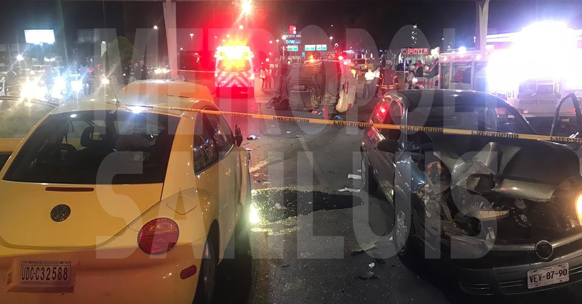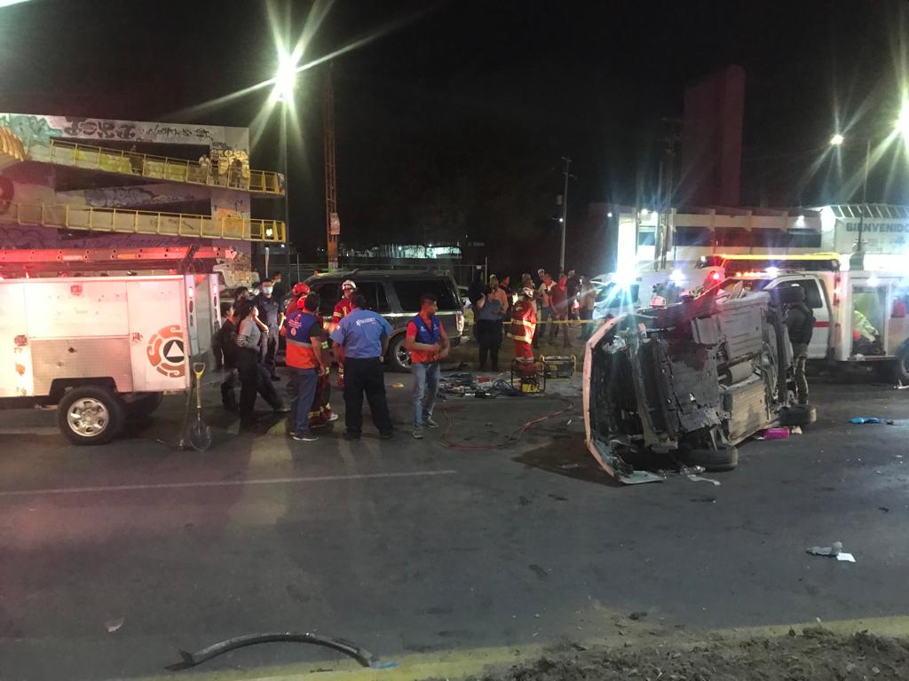 Los hechos se registraron cerca de las 21:30 horas, y en el accidente se vieron involucrados tres vehículos. Uno de los autos, de color blanco, volcó tras la colisión y quedó totalmente destruido. Los dos ocupantes del vehículo volcado perdieron la vida, quedando atrapados entre los restos metálicos del auto siniestrado.