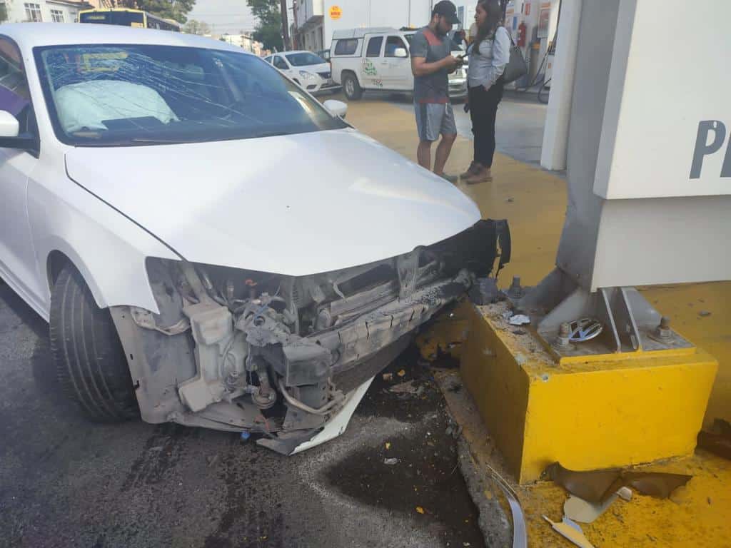 Un automóvil compacto de color blanco se vio involucrado en un choque contra un objeto fijo en la gasolinera El Santuario, ubicada en la avenida Juárez, en San Luis Potosí. A pesar del incidente, solo se reportaron daños materiales y lesiones menores.