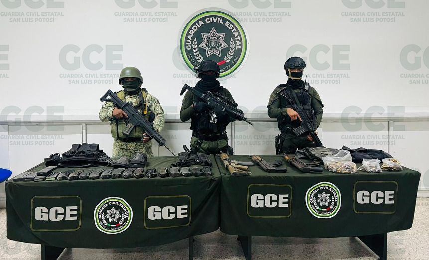 - Tres fusiles de asalto: dos calibre 7.62 (conocidos como “cuernos de chivo”) y uno calibre 5.56.