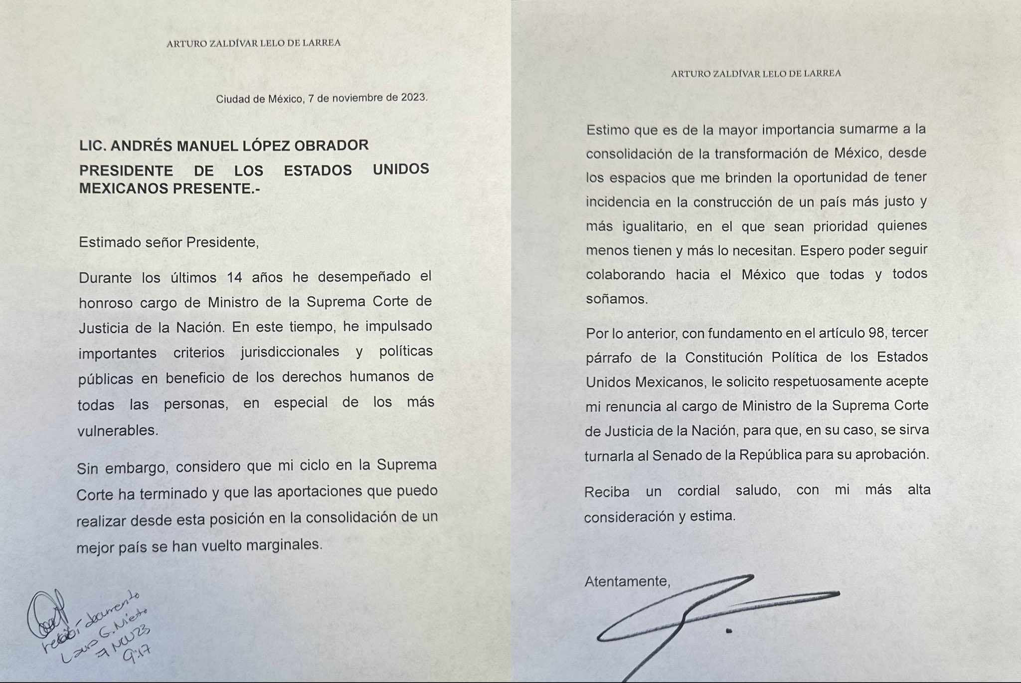La renuncia de Zaldívar se encuentra ahora en manos del presidente López Obrador y, de ser aceptada, deberá ser aprobada por el Senado de la República. Este proceso es conforme a los requerimientos constitucionales y podría significar una etapa de transición y renovación dentro de la Corte.