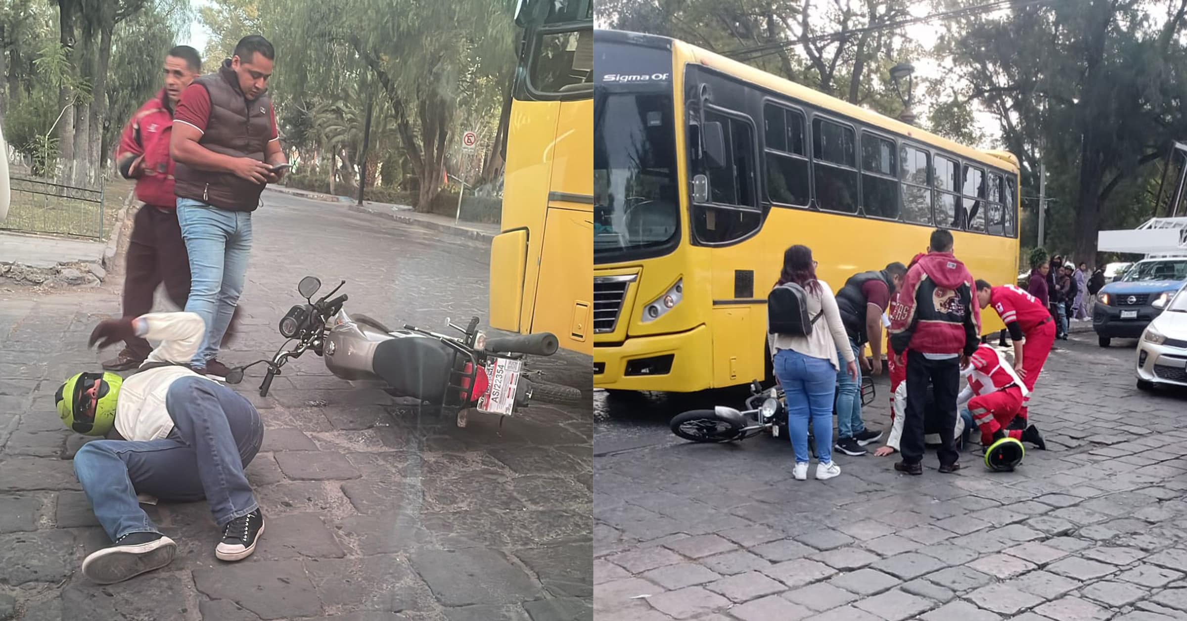 Camión urbano atropella a motociclista sobre la Calzada de Guadalupe frente a la Cruz Roja