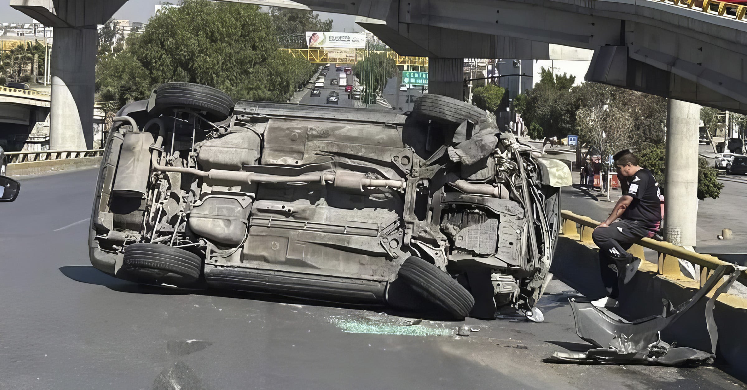 El vehículo quedó tendido de costado y obstruyendo la vía, de forma preliminar se desconoce si el vehículo volcó por ser conducido imprudentemente o por el golpe de algún otro auto.