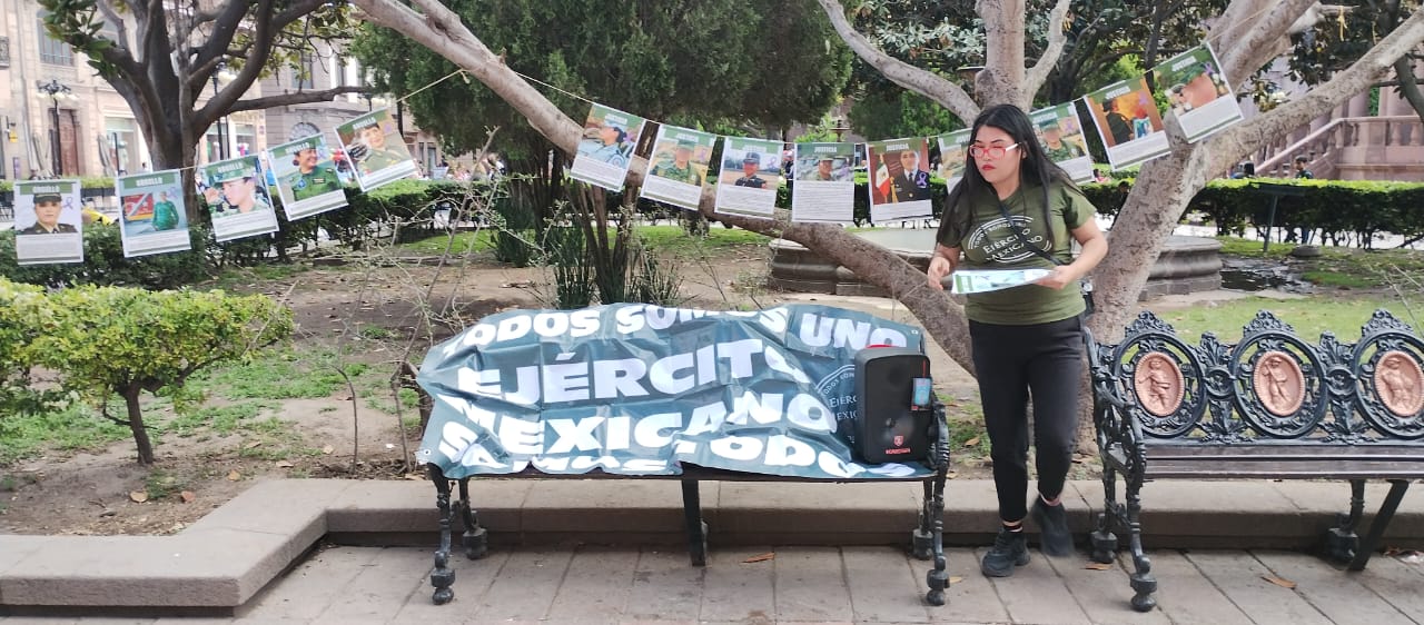 Instalan "tendedero del acoso" en la capital potosina para visibilizar casos de violencia y acoso en la Sedena
