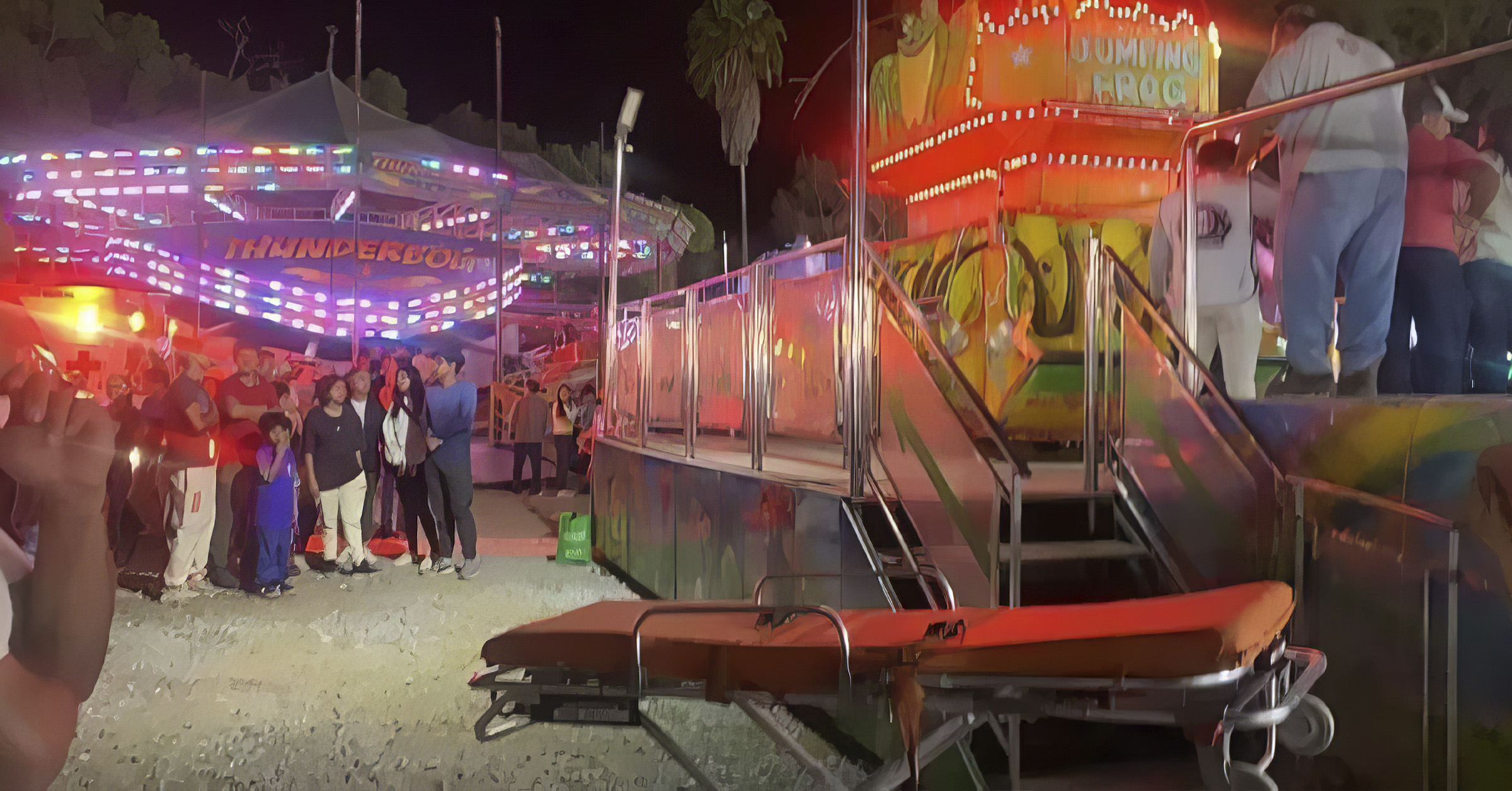El “Jumping Frog” es un juego que consiste en un anillo de asientos alrededor de una torre central, el cual utiliza un sistema hidráulico para ascender y descender bruscamente. Según reportes, la falla se debió a la salida de un cable de una de las poleas, lo que provocó que el descenso fuera violento y no amortiguado como es usual, causando las lesiones de los menores.