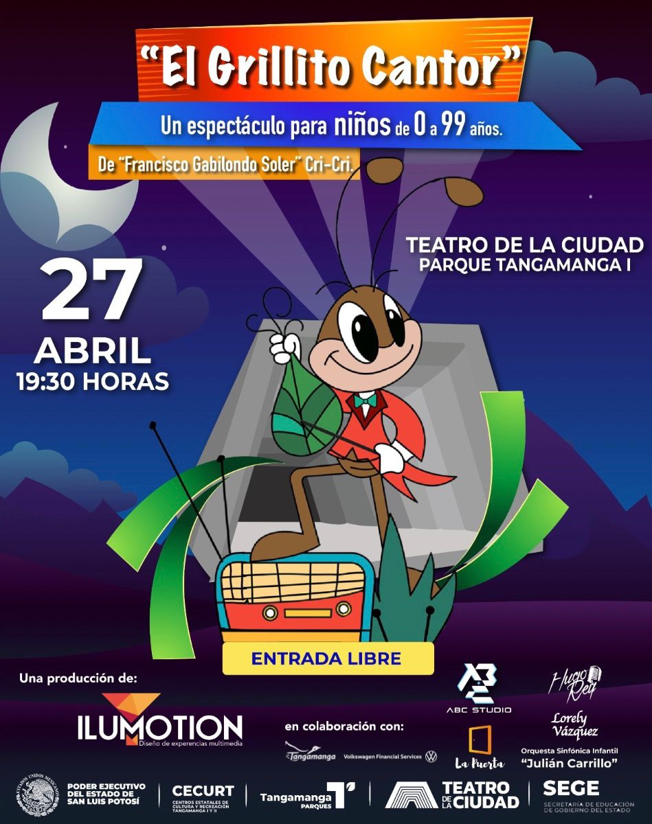 “El Grillito Cantor”: Un espectáculo musical gratuito para celebrar el Día de la Niña y el Niño en Tangamanga