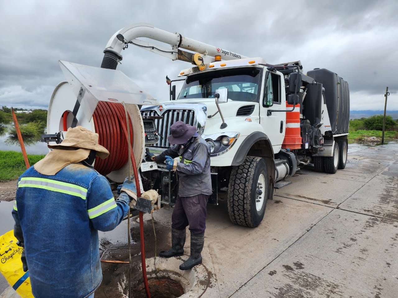 Con apoyo de un camión de presión succión, se atendieron calles con encharcamientos debido a las recientes lluvias. La zona es la más baja de la ciudad, por lo que se realizan una serie de acciones para evitar inundaciones.