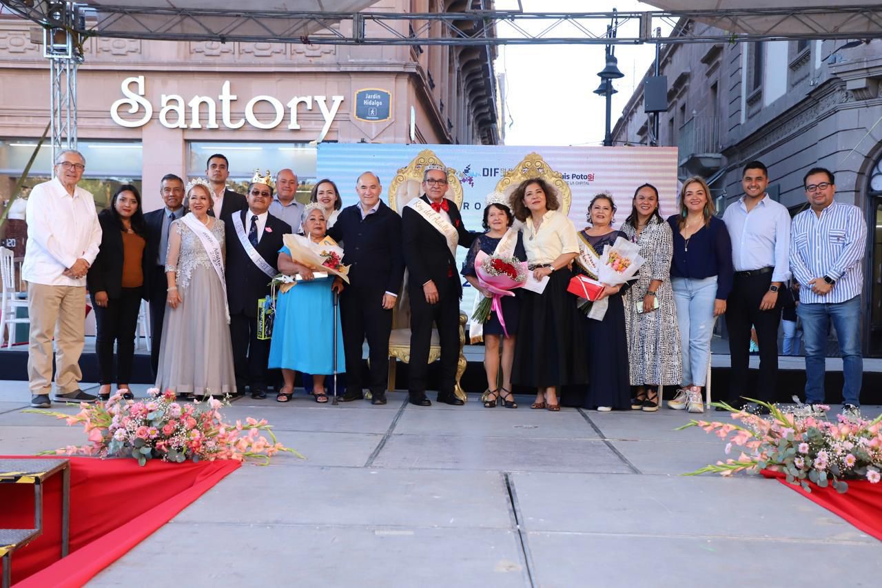 SLP.- En un emotivo evento celebrado en la arquería del Centro Cultural Palacio Municipal y su explanada exterior, la presidenta del DIF Capitalino, Estela Arriaga Márquez, y el alcalde Enrique Galindo Ceballos coronaron a María Martha Bustamante Loya del Club “Vida Nueva” como Reina y a José Luis Barragán Cabriales, del Club “Eterna Juventud 2”, como Rey de los Clubes de Adultos Mayores para el periodo 2024-2025.