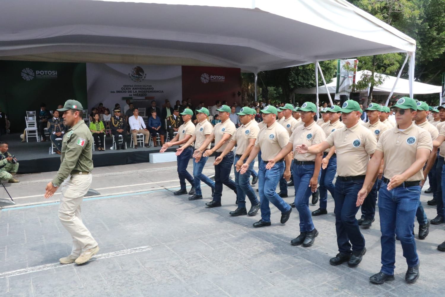 Desfile cívico militar: contingente de la Secretaría Estatal de Seguridad brilla con patriotismo y marcialidad