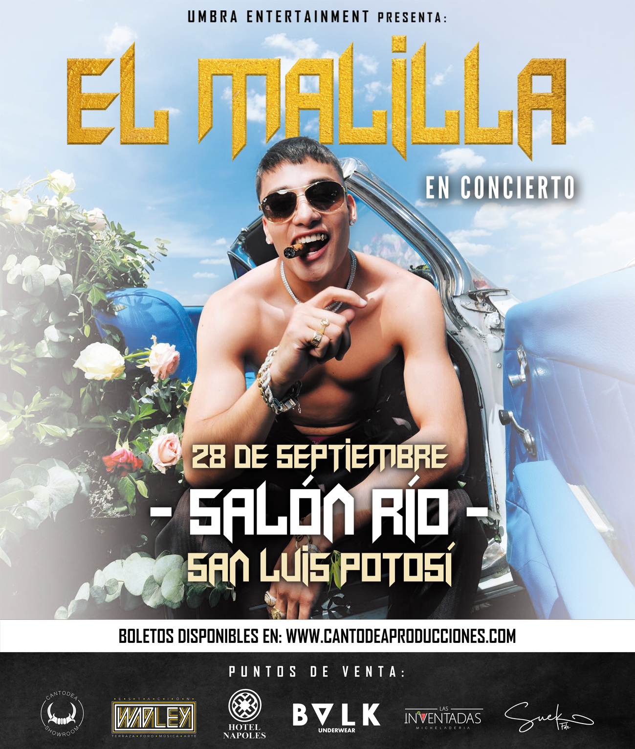 San Luis Potosí, S.L.P.El Malilla, uno de los artistas más destacados del reggaetón mexicano, se presentará el próximo 28 de septiembre en el Salón Río, prometiendo una noche inolvidable con su estilo único y enérgico.