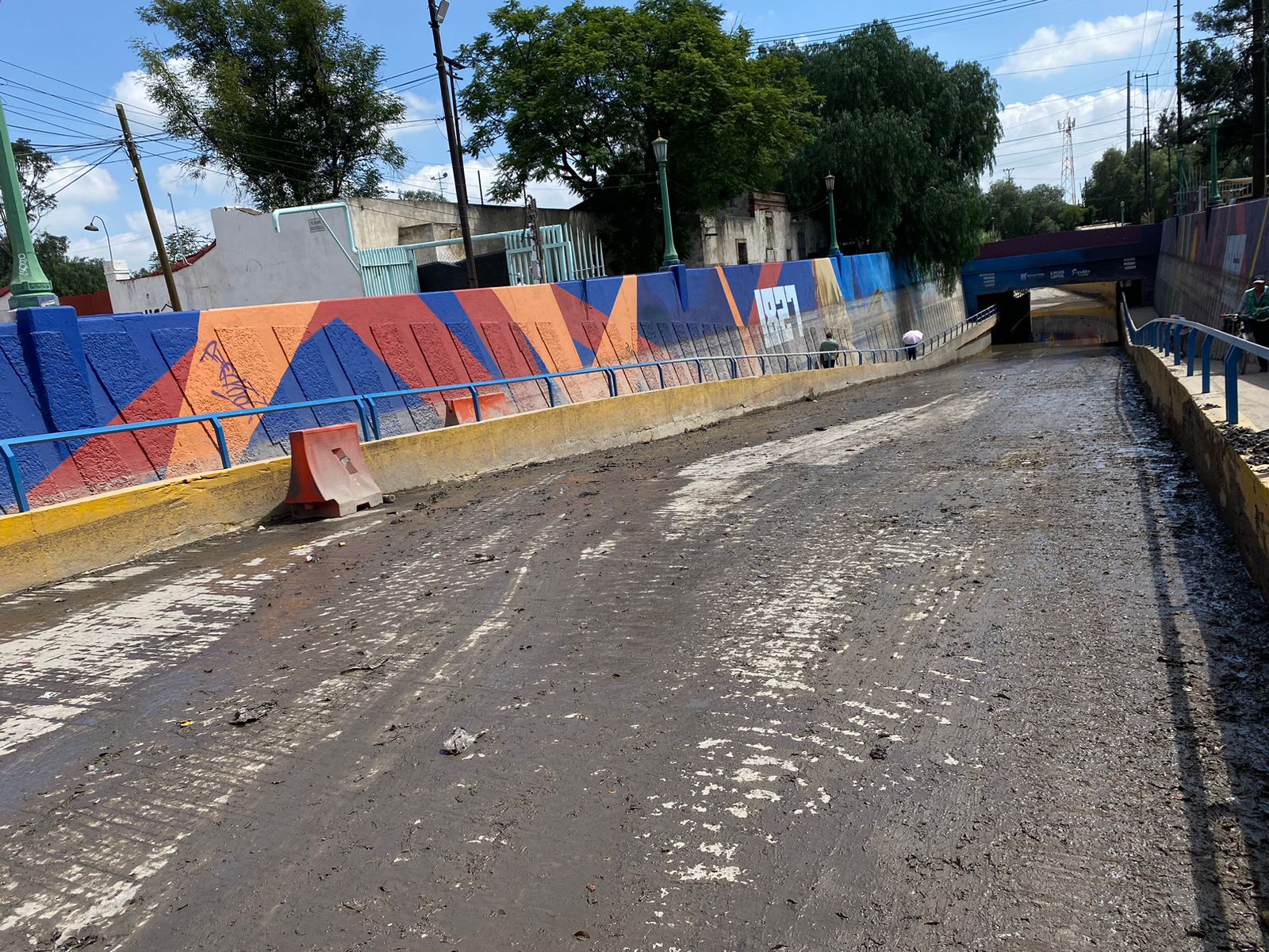 San Luis Potosí.- Este jueves, personal de Interapas llevó a cabo la limpieza del puente Manuel J. Othón, lo que permitirá su pronta reapertura a la circulación. Las labores se realizaron en coordinación con la Dirección de Gestión Ecológica y Manejo de Residuos del Ayuntamiento de la Capital, como parte de las acciones emergentes para limpiar las vialidades inundadas tras las fuertes lluvias del fin de semana.