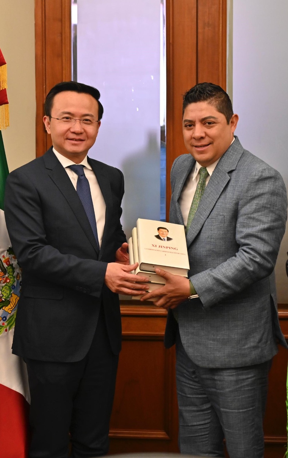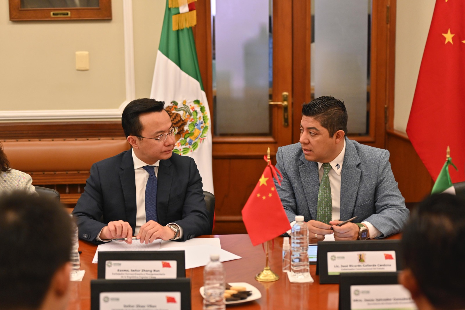 San Luis Potosí, S.L.P. – En una reunión que reafirma el compromiso de San Luis Potosí con el intercambio económico, cultural y educativo internacional, el Gobernador Ricardo Gallardo Cardona recibió al Embajador de la República Popular China en México, Zhang Run. Durante el encuentro, realizado en Palacio de Gobierno, se discutieron proyectos para incrementar la inversión extranjera y se resaltaron las oportunidades únicas que el Estado ofrece para empresas globales, especialmente en el contexto de la posible instalación de una planta automotriz china.