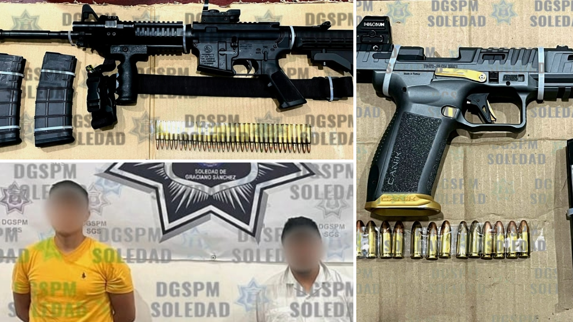 Detienen a dos hombres por presunto ataque armado y posesión de armas en Soledad de Graciano Sánchez