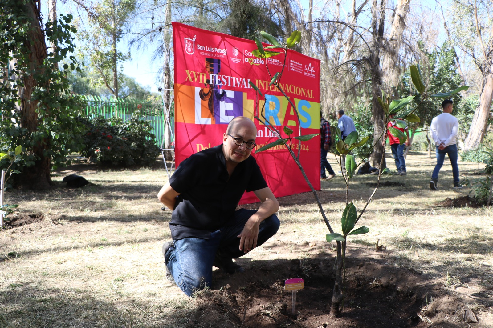 Escritores del Festival Letras en San Luis participan en acciones de reforestación en el Parque de Morales