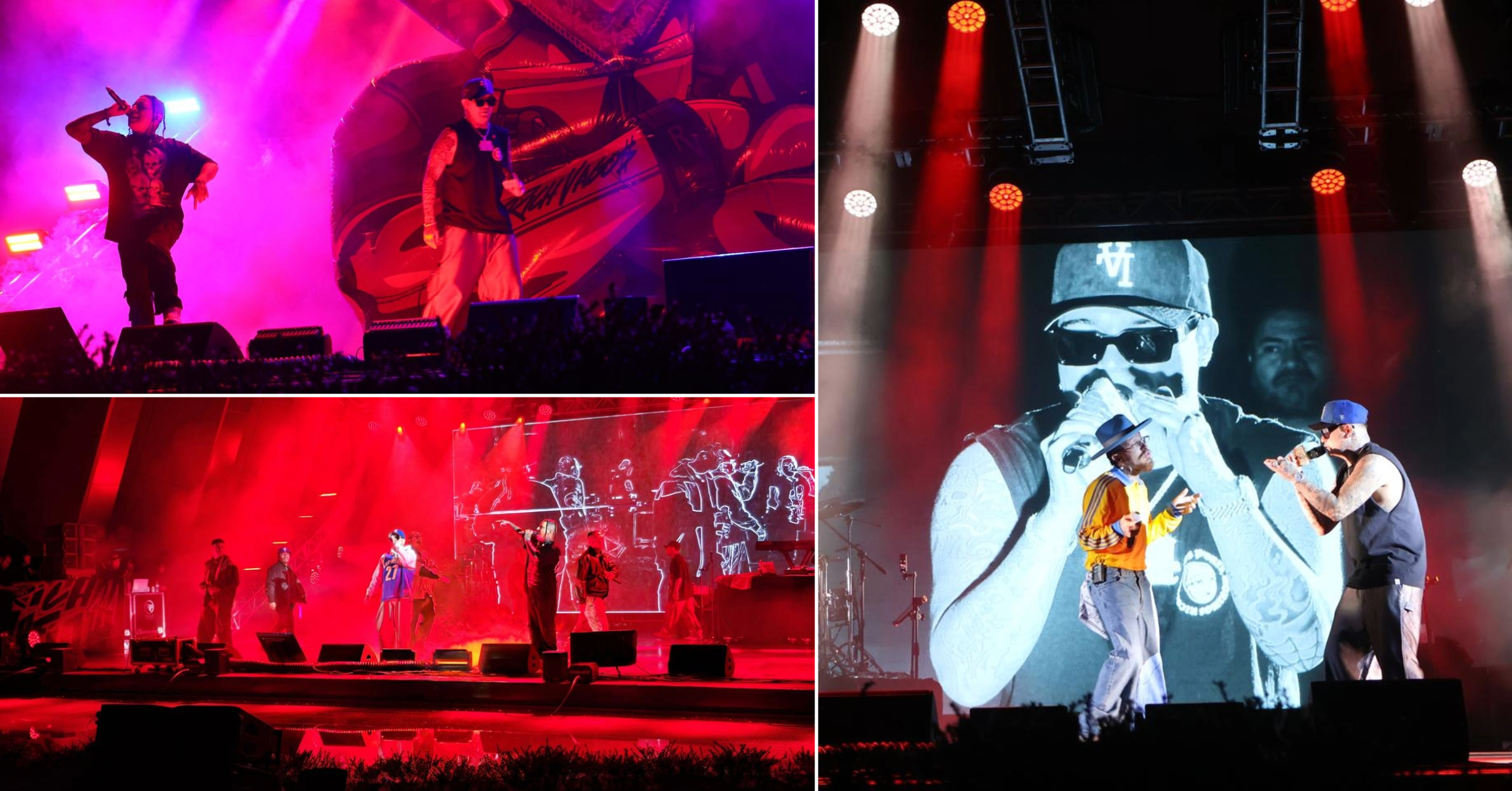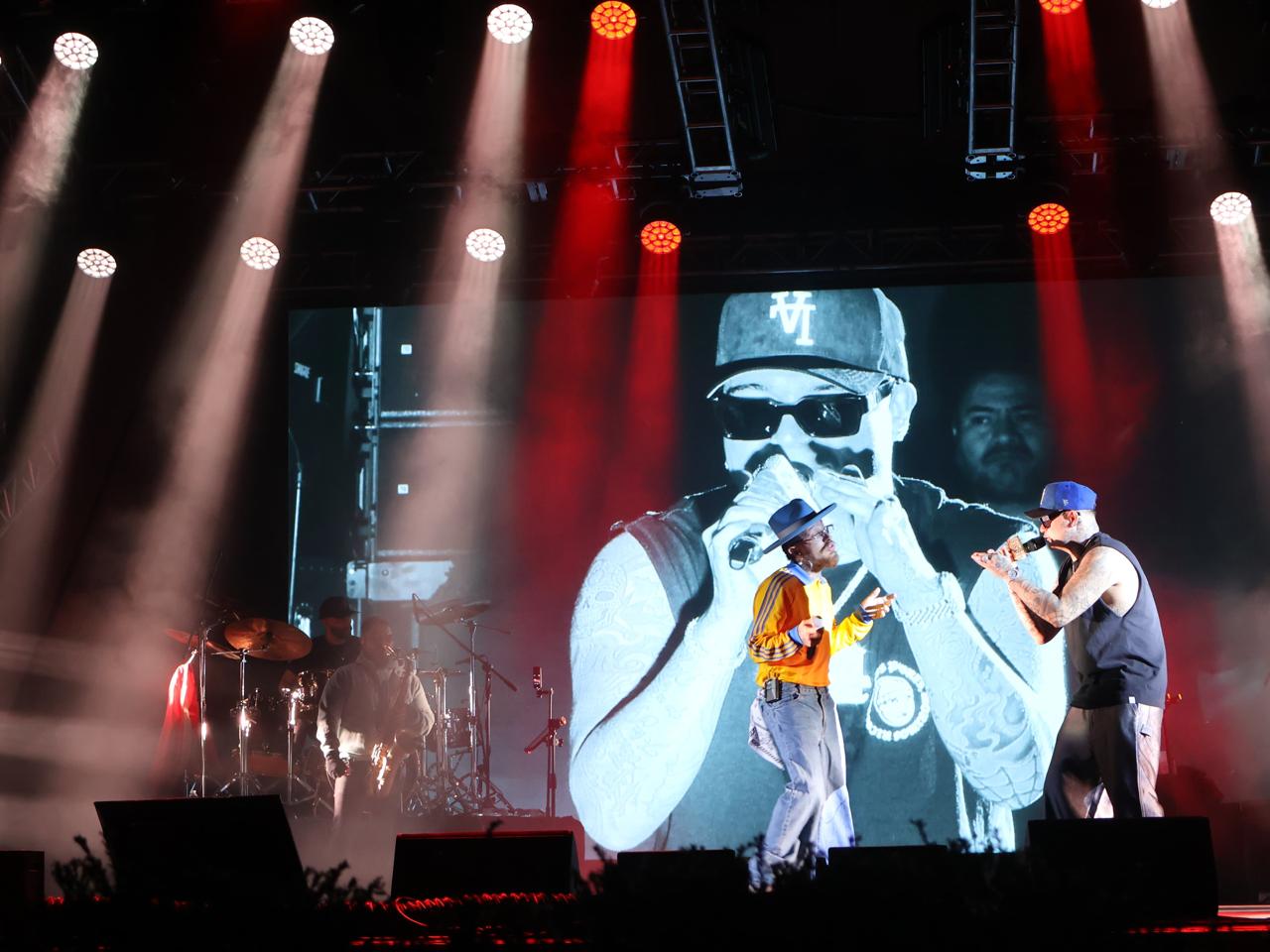 Gera MX, acompañado por su familia artística Rich Vagos, ofreció un show cargado de energía y emociones. Durante la noche, el rapero potosino interpretó éxitos como “Bye Bye”, “Nunca te pude alcanzar”, “Veneno”, “Ahora quién”, “El gran pez” y “Complicado”, que fueron coreados por un público entusiasta, en su mayoría jóvenes.