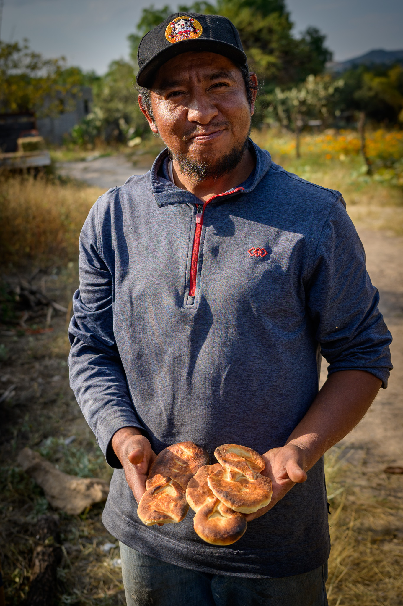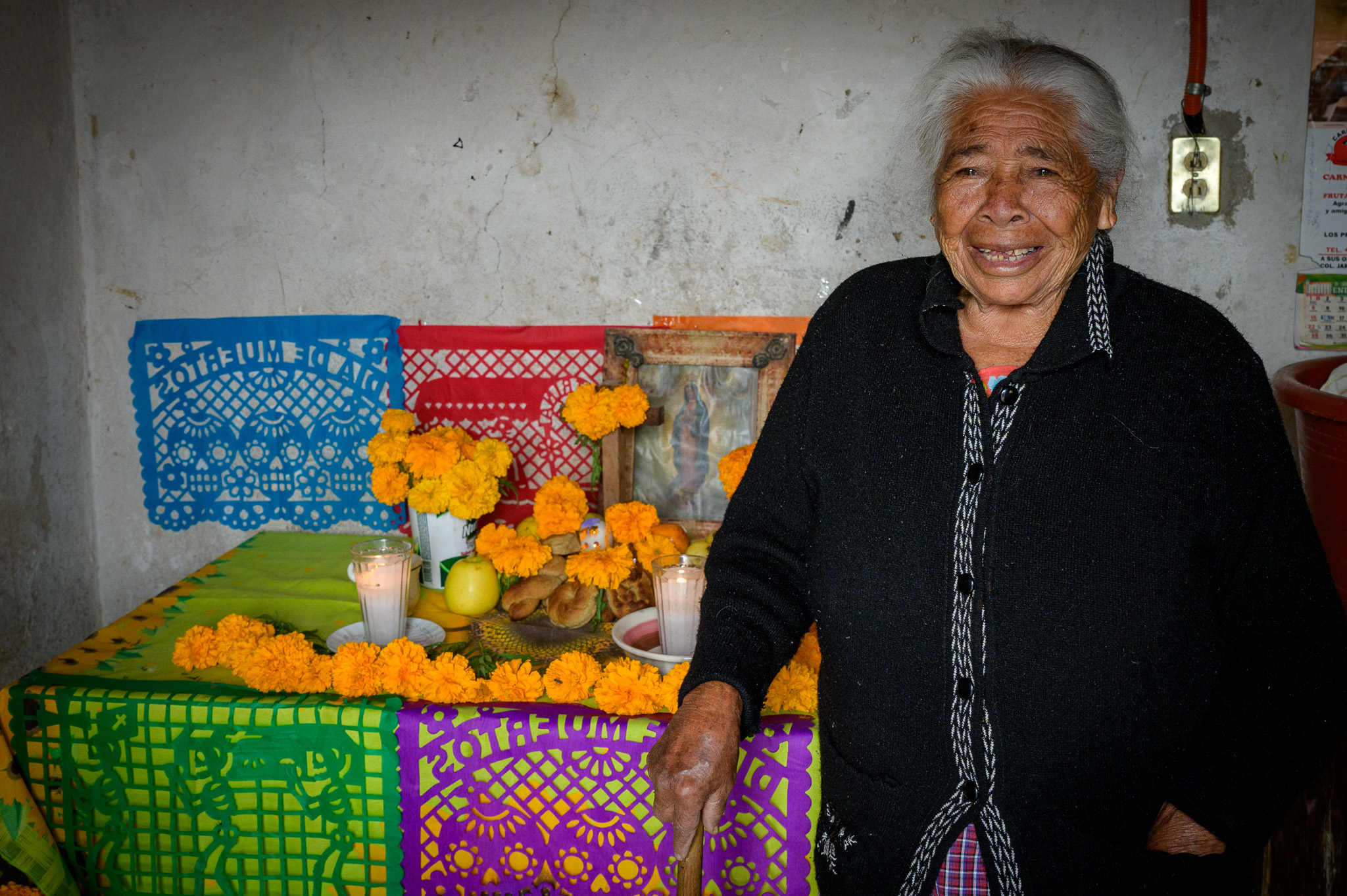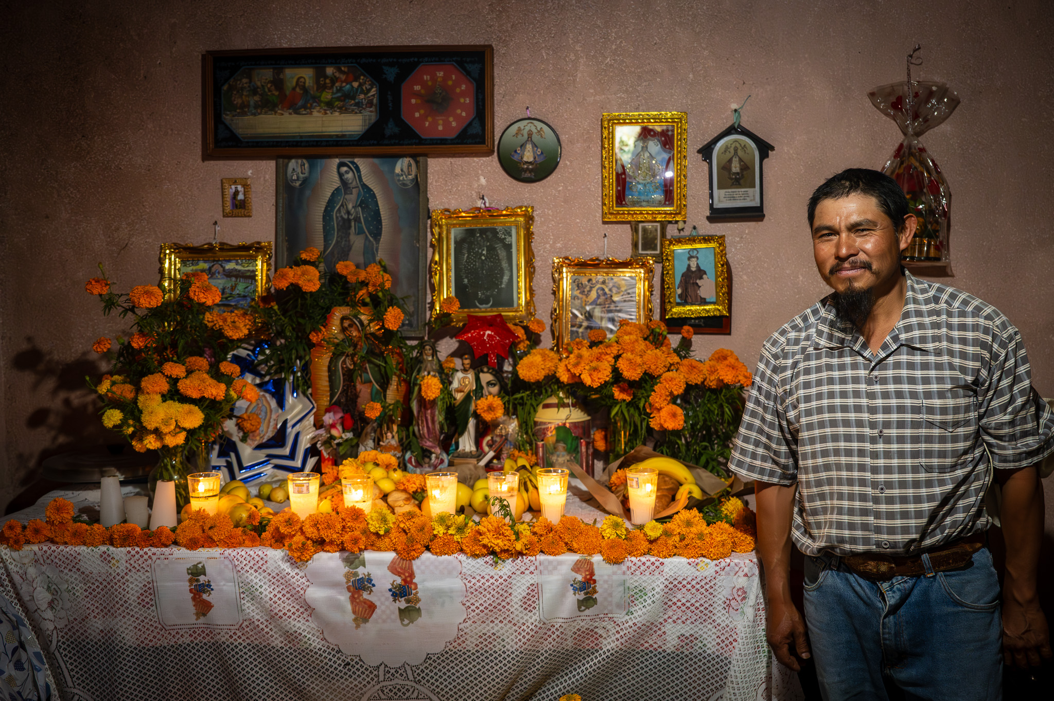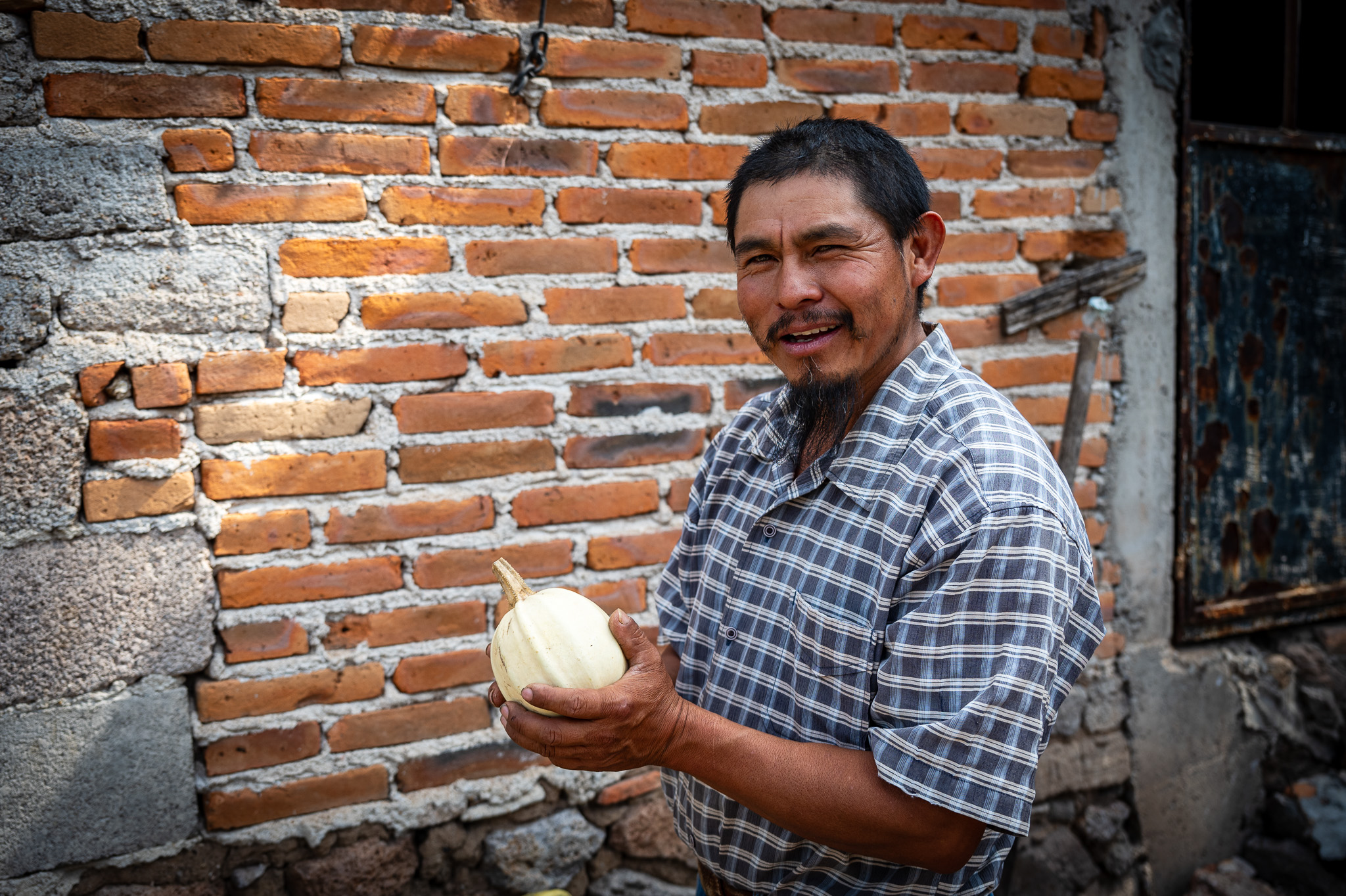 Jesús Zavala Puerta, otro pilar de la localidad, resalta la importancia de estas ceremonias y cómo se organizan año tras año. Se siente muy agradecido por su parcela pues nos cuenta como la tierra le da todo, nos mostró sus calabazas con las que se elaboran platillos típicos de las fechas.
